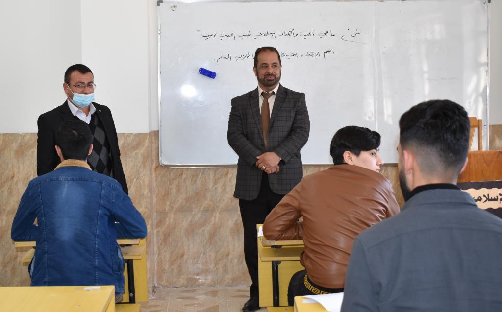 انطلقت هذا اليوم الثلاثاء الموافق 15/3/2022 الامتحانات الحضورية النهائية للفصل الأول – الدور الأول لطلبة المرحلة الأولى للعام الدراسي 2021-2022. وقد تفقد السيد العميد الأستاذ الدكتور طه حماد مخلف مع السادة المعاونين ورؤساء الأقسام سير الامتحانات وأكد على الالتزام بالتعليمات الصحية وإجراءات السلامة المبلغة من خلية الازمة.وقد حثت عمادة الكلية على مراعاة جانب المرونة والتعامل بروح القانون مع الالتزام بتعليمات وزارة التعليم العالي والبحث العلمي فيما يخص عمل اللجان الامتحانية والمراقبات .تمنياتنا بالصحة والسلامة والنجاح والتوفيق لطلبتنا الأعزاء .