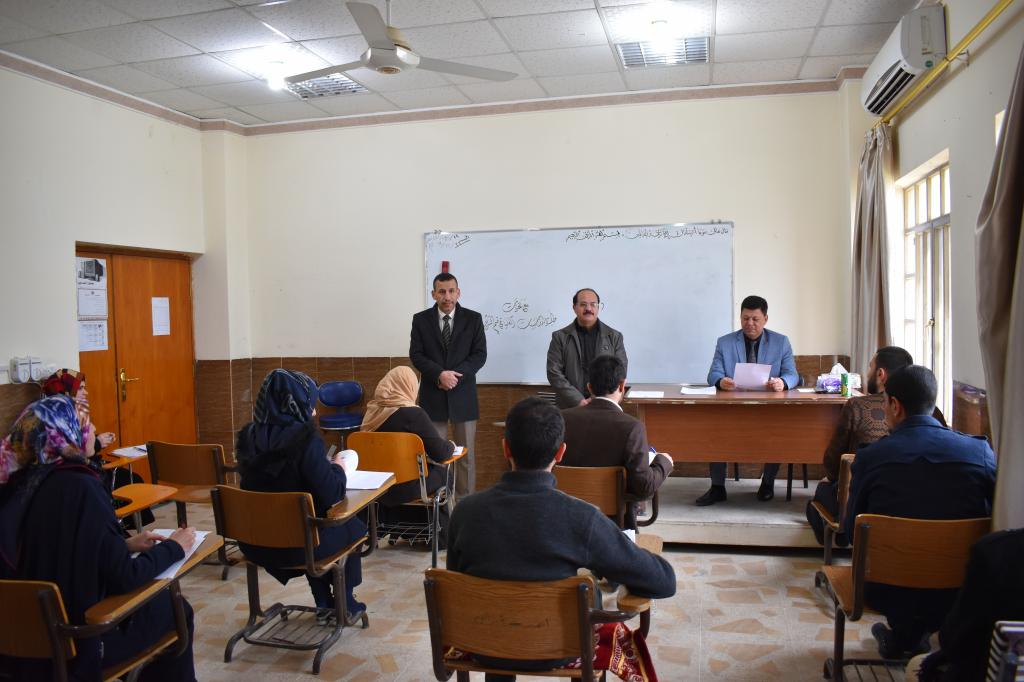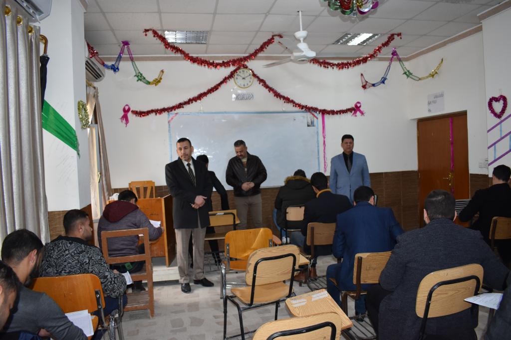 تفقد السيد عميد الكلية الأستاذ الدكتور طه حماد مخلف القاعات الامتحانية للأقسام العلمية وطلبة الدراسات العليا لقسم الشريعة برفقة السيد المعاون العلمي هذا اليوم الأربعاء 29 كانون الثاني 2020 الامتحانات النهائية للكورس الأول للعام الدراسي 2019-2020 .