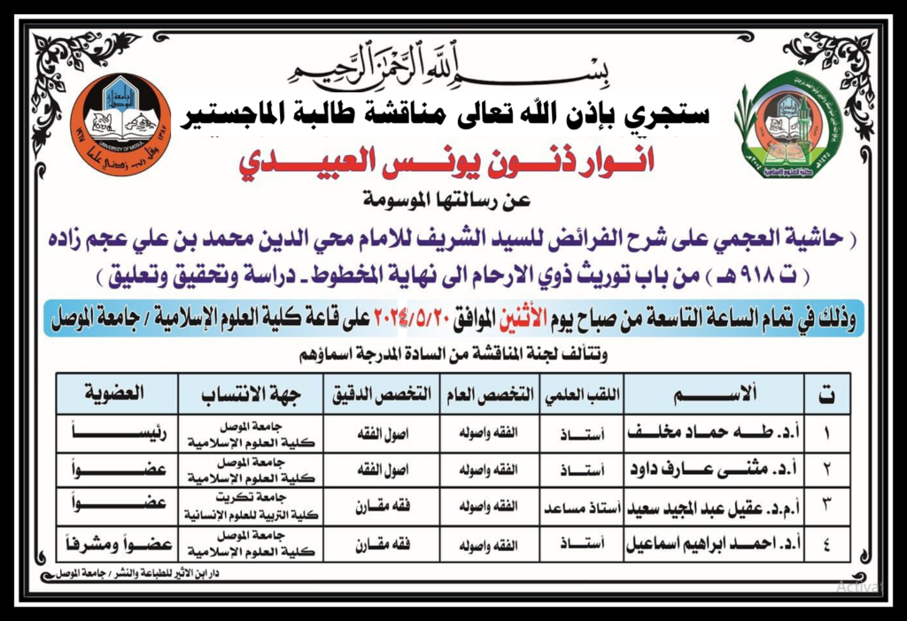 زار السيد مساعد رئيس جامعة الموصل للشؤون العلمية الاستاذ الدكتور منير سالم طه اليوم الاحد الموافق 19/5/2024 كلية العلوم الإسلامية، يرافقه الأستاذ المساعد الدكتور رقيب حمادي رجب مدير الشؤون الطلابية. وكان في استقباله السيد عميد الكلية الأستاذ الدكتور طه حماد مخلف والمعاون الإداري الأستاذ المساعد الدكتور ثابت مهدي حمادي ورؤساء الأقسام العلمية وجمعاً من أساتذة الكلية .