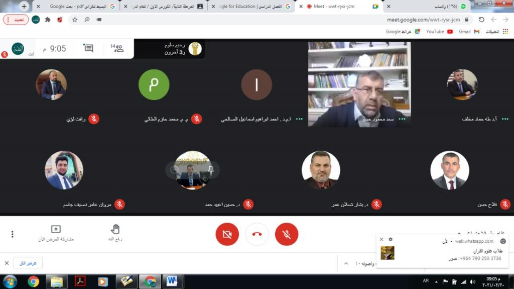 إنسجاماً مع رؤية جامعة الموصل في مد آفاق التعاون مع الجامعات العراقية ، عقدت اللجنة المشرفة على المؤتمر الدولي العلمي يوم أمس السبت الموافق 20/2/2021 إجتماعاً موسعاً عبر الفضَاء الإلكتروني ، وذلك لجدولة الترتيبات اللازمة فيما يخص إقامة المؤتمر الدولي الموسوم :(الاشكالات المعاصرة من منظور إسلامي ) ترأس الاجتماع كلٌ من السيد عميد كلية العلوم الاسلامية في جامعة الموصل الأستاذ الدكتور طه حماد مخلف المحترم والسيد عميد كلية العلوم الإسلامية في جامعة تكريت الاستاذ الدكتور سعد محمود المحترم.كما وحضر الاجتماع كلٌ من السادة المعاونين و السادة رؤساء الأقسام و ممثلي الكليتين ،من جانبه حددت اللجنة مطلع الشهر المقبل موعداً للإفصاح عن أمور المؤتمر كافةً ، ووضع المجتمعون معايير إقامة المؤتمر وتفاصيله بما ينسجم وخدمة الحركة البحثية في الجامعات والكليات العراقية والعالمية .سائلين المولى عز وجل التوفيق والسداد