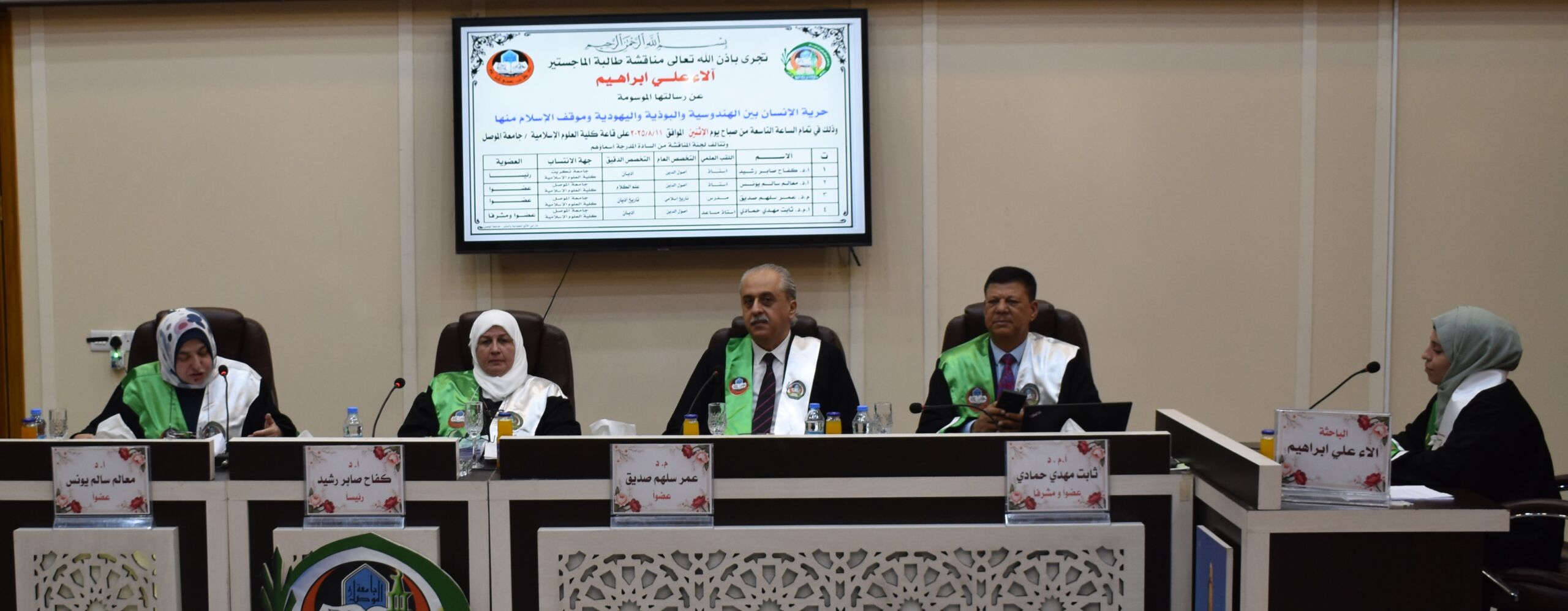 نوقشت هذا اليوم الاثنين الموافق 11 / 8 /2025 في كلية العلوم الإسلامية بجامعة الموصل رسالة الماجستير الموسومة ( حرية الإنسان بين الهندوسية والبوذية واليهودية [إقرأ المزيد]