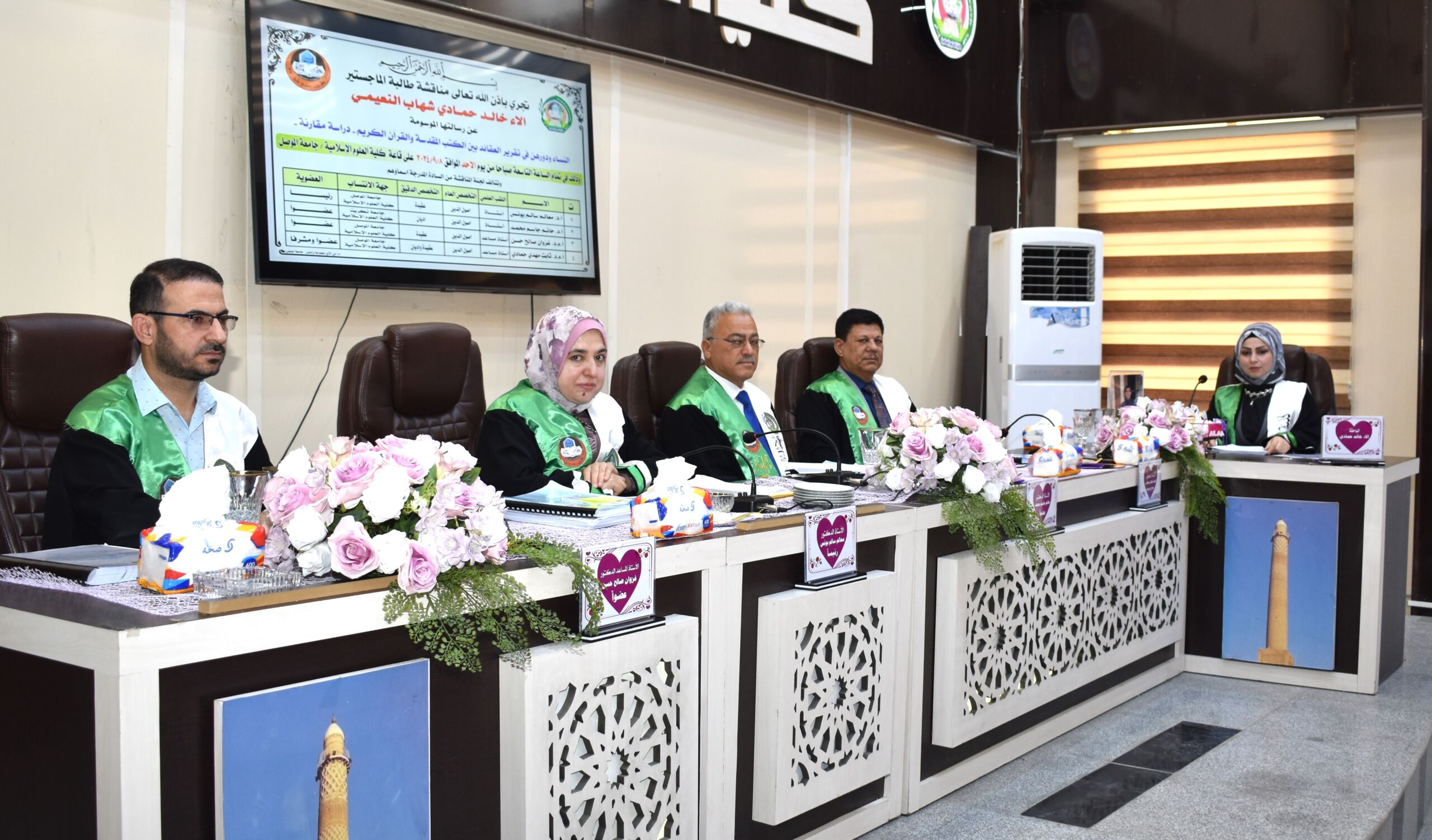 ترأس لجنة المناقشة الأستاذ الدكتورة (معالم سالم يونس) وعضوية كل من الأستاذ الدكتور (حاتم جاسم محمد) والأستاذ المساعد الدكتور (غزوان صالح حسن) وبإشراف الأستاذ المساعد الدكتور (ثابت مهدي حمادي).