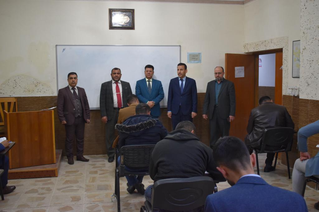 انطلقت هذا اليوم الخميس الموافق 22/12/2022 امتحانات نهاية الكورس الأول لطلبة الدراسات العليا (الدبلوم العالي والماجستير) لقسمي الشريعة والعقيدة والفكر الاسلامي في كلية العلوم الإسلامية.وقد قام السيد عميد الكلية الأستاذ الدكتور طه حماد مخلف بتفقد سير الامتحانات يرافقه السادة المعاونين العلمي والإداري واطلع خلال الجولة على واقع الامتحانات فيها واستمع الى آراء الطلبة في الاسئلة الامتحانية ومدى ملائمتها للمستوى العلمي والمنهاج الدراسي وبما يحقق الغاية المطلوبة في الرصانة العلمية وشدد على لجان الدراسات العليا متابعة تنفيذ تعليمات وزارة التعليم العالي والبحث العلمي.