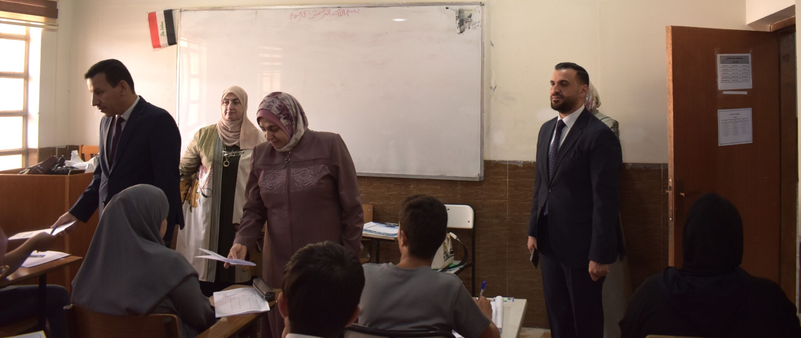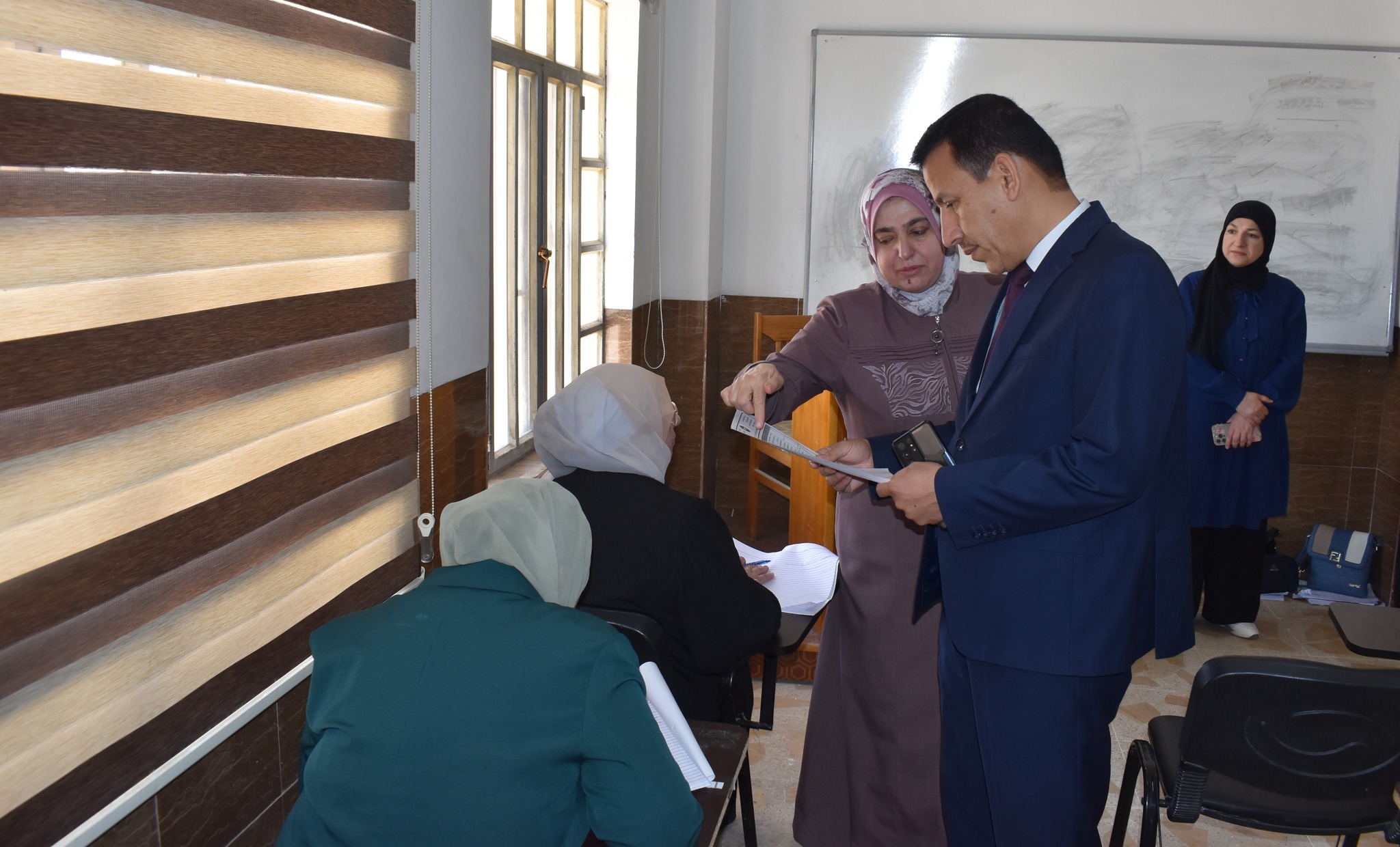وقد تفقد السيد العميد الاستاذ الدكتور طه حماد مخلف برفقة السيد المعاون العلمي والمعاون الاداري والسادة رؤساء الأقسام سير الامتحانات في أقسام الكلية الثلاثة.