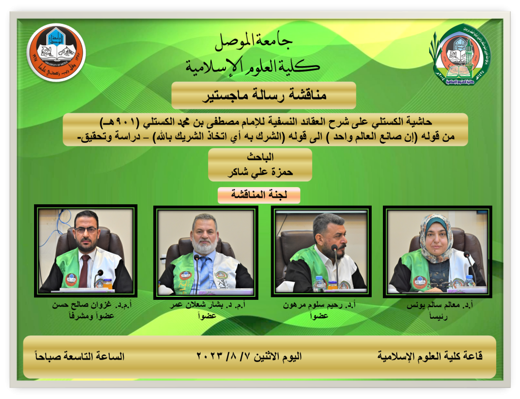 الأستاذ الدكتور طه حماد مخلف عميد كلية العلوم الإسلامية يمنح أعضاء لجنة تقييم الواقع العلمي والأكاديمي في مكتبه اليوم الثلاثاء الموافق 1/8/2023 اللجنة الوزارية لتقييم الواقع العلمي والأكاديمي لكليات العلوم الإسلامية شهادة شكر وتقدير لجهودهم المبذولة في المشاركة في تقييم الواقع العلمي والاكاديمي في كليات العلوم الإسلامية .