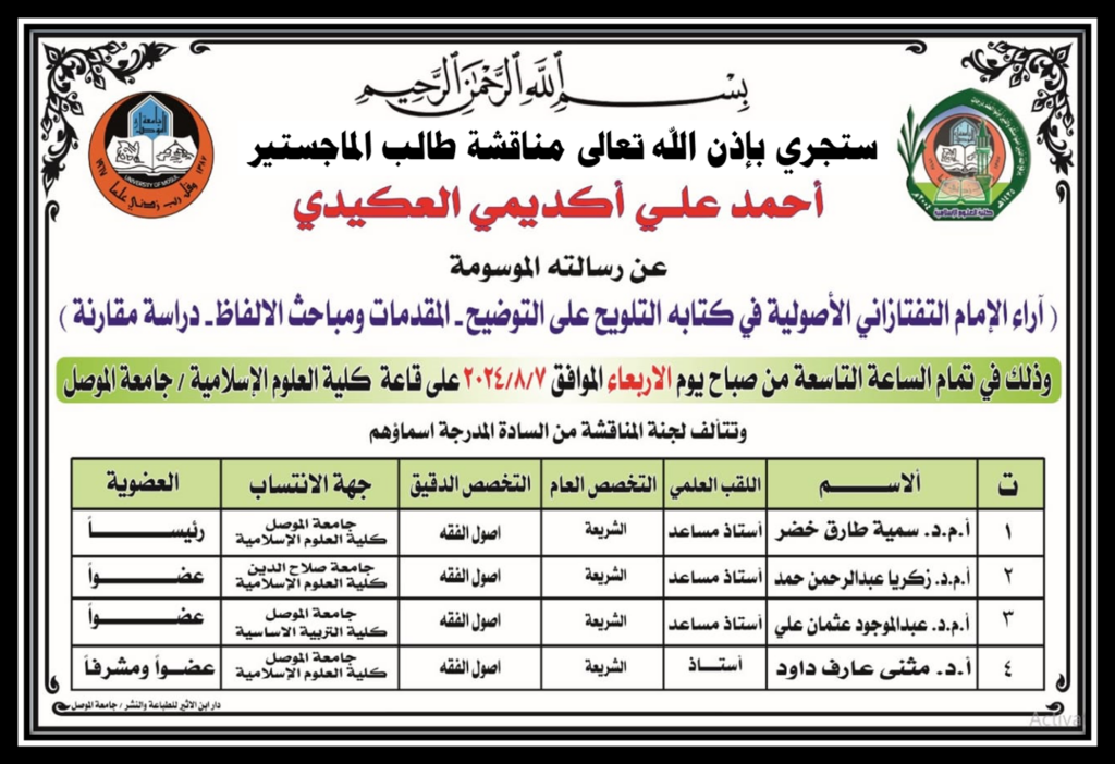 وقد اشتملت عملية التقييم على محاور عدة اعتمدتها لجنة العمداء. وكانت اللجنة بعضوية كل من الاستاذ الدكتور اثير طارق نعمان معاون العميد العلمي في كلية العلوم الإسلامية بجامعة الانبار والأستاذ الدكتور مهند عبد الستار جميل من كلية العلوم الإسلامية جامعة تكريت.
