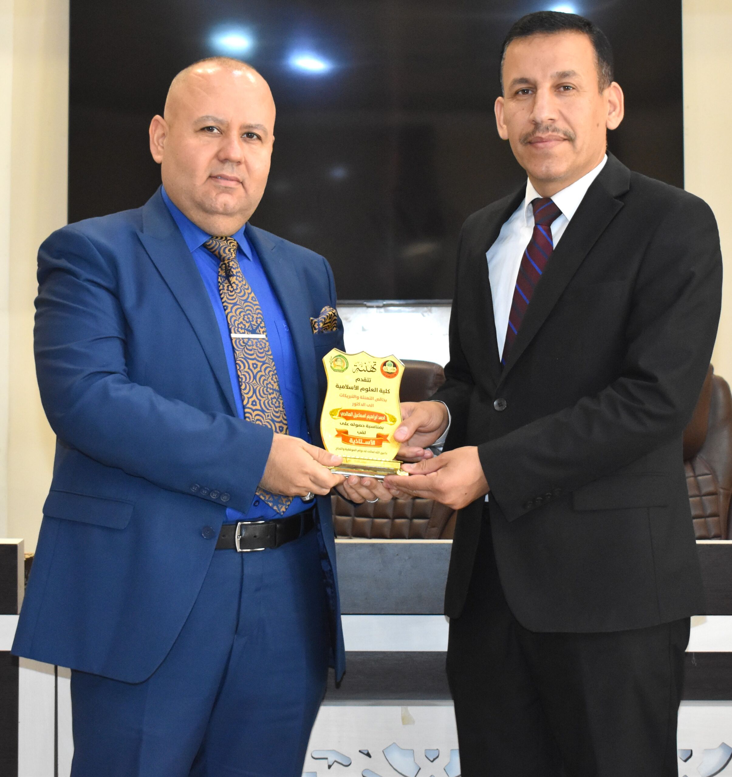 بجو ملئ بالبهجة والسرور عمادة كلية العلوم الإسلامية تكرم كوكبة من اساتذتها بمناسبة الترقية الى مرتبة الاستاذية والتدريسيين الذين نالوا على شهادة الدكتوراه وشهادة الماجستير.