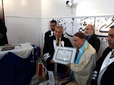 شارك السيد عميد كلية العلوم الإسلامية الأستاذ الدكتور طه حماد مخلف برفقة الأستاذ المساعد الدكتور نشوان محمود الصفار هذا اليوم السبت الموافق ١٦/٣/٢٠١٩ في حفل تكريم شيخ الخطاطين العراقيين الأستاذ يوسف ذنون الموصلي حيث كرم بشهادة الدكتوراه الفخرية من الاكاديمية العالمية لعلماء الصوفية وسط حضور كبير من علماء المدينة ومشايخها ومثقفيها .