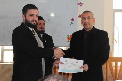 بمشيئة الله تعالى تم اليوم الاحد الموافق 13/1/2019 توزيع شهادات المشاركة في دورة حفظ الرحبية في علم المواريث والتي اقامها قسم العقيدة في الكلية برئاسة الدكتور فاضل يونس حسين وعضوية كل من الدكتور عمار يونس عبد الرحمن والدكتور غزوان صالح حسن والدكتور ثابت مهدي وقد تفضل السيد العميد مشكوراً في هذه المناسبة واشرف على توزيع شهادات المشاركة علماً انه اشترك في الدورة ستة وثلاثون تدريسياً من الكليات والاقسام المختلفة اضافة الى اربعين طالباً اغلبهم من قسم العقيدة , وتأتي هذه المشاركة ضمن نشاطات التعليم المستمر في الكلية .