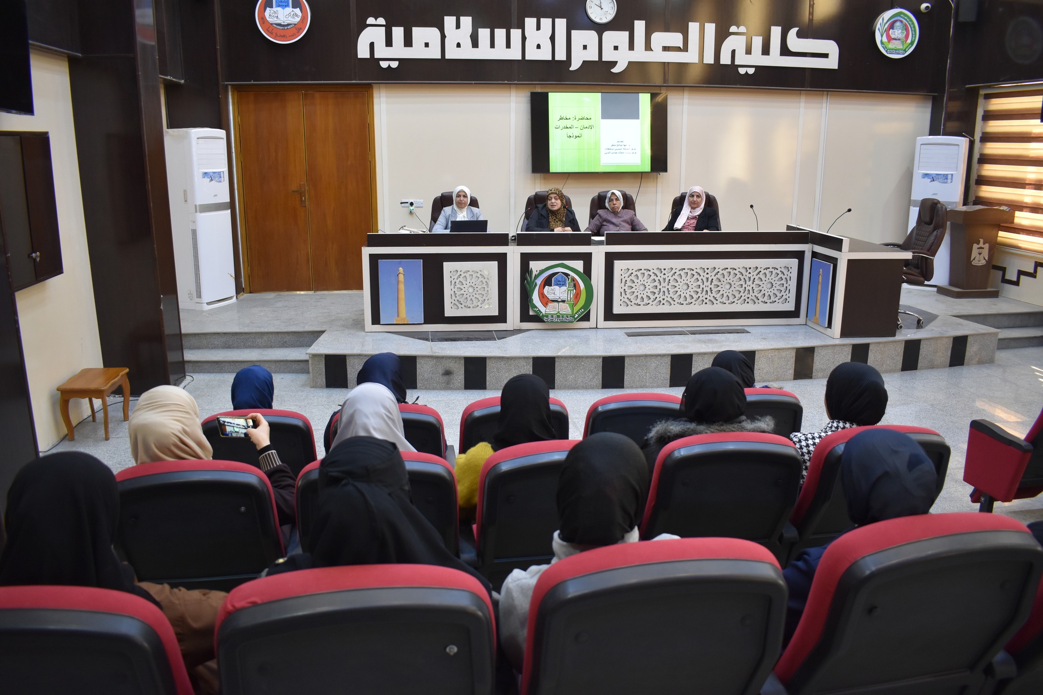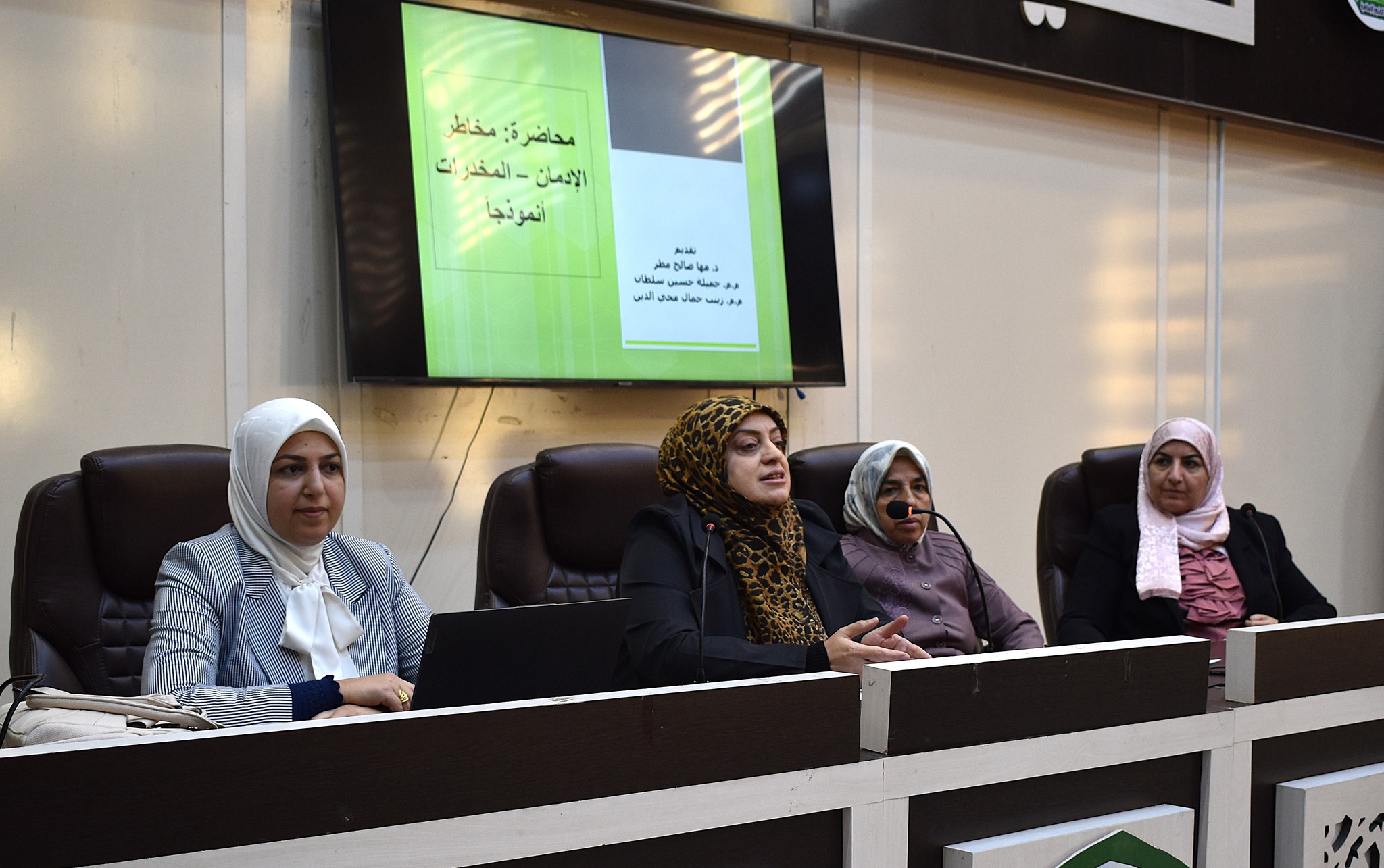 والمحاضرة الثالثة قدمتها م. م. جميلة حسين بعنوان” الأثار الفقهية لمخاطر الادمان في المجتمع“.