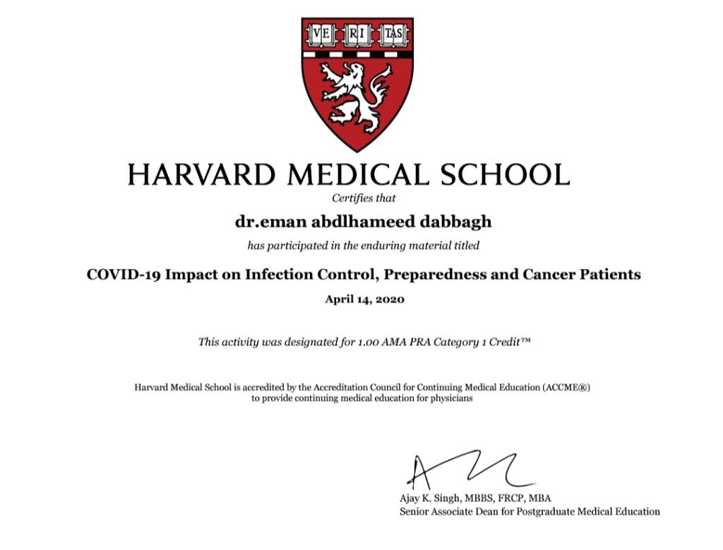 دورات خاصة بفايروس كوروناحصل عدد من أساتذة قسم العقيدة والفكر الإسلامي على شهادات مشاركة من كلية (HARVARD) الأمريكية للطب من خلال المشاركة في دورات تثقيفية خاصة بفايروس كورونا .. وهم كل من:أ.م.د. بشار شعلان عمر النعيميأ.م.د. إيمان عبد الحميد محمدم.م. حنان صبحي سلمانم.م. محمد إلياس هاشموتأتي هذه المشاركات تأكيدا لتوجيهات الوزارة في تعزيز التعليم الإلكتروني