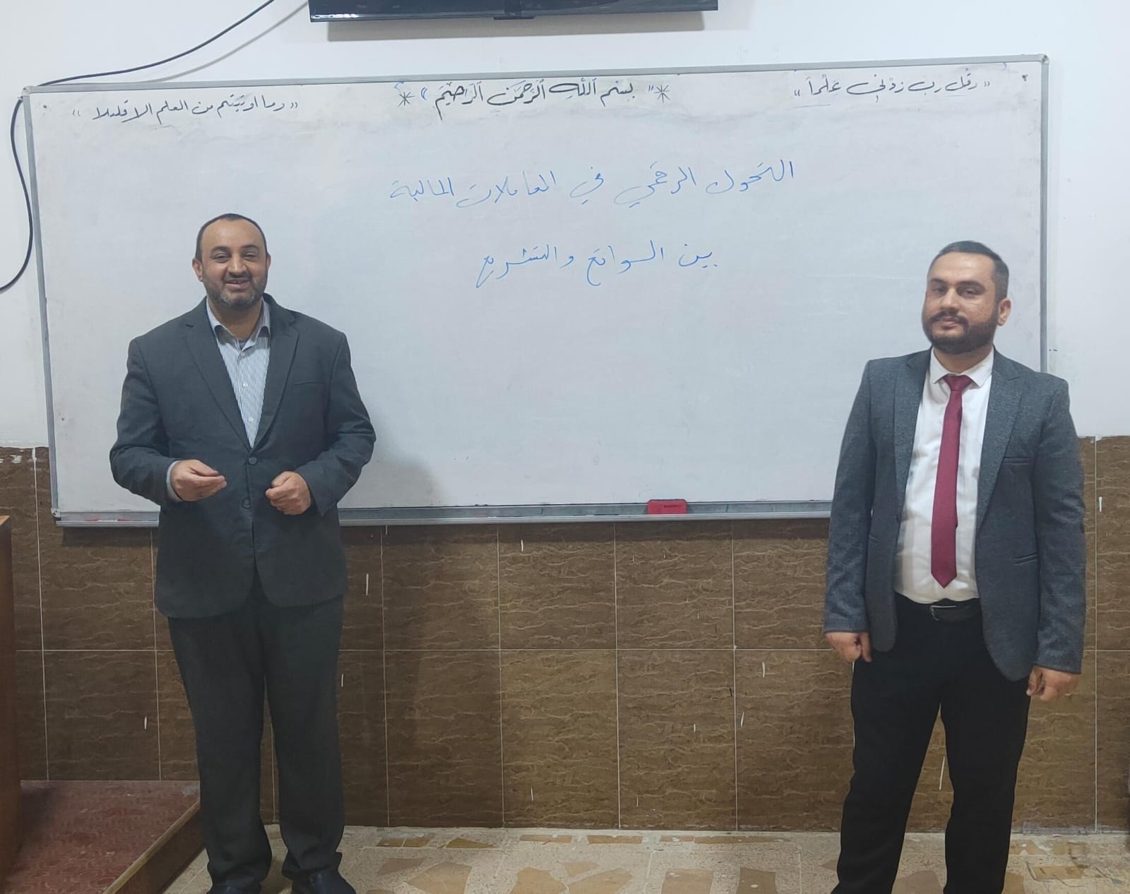 بإشراف السيد عميد كلية العلوم الإسلامية الأستاذ الدكتور طه حماد مخلف ومتابعة من قبل السيد معاون العميد للشؤون العلمية والدراسات العليا أقام (قسم الشريعة ) وبالتعاون مع (وحدة التعليم المستمر) يوم الأربعاء الموافق 19/ 11 / 2025 دورة علمية استمرت 3 أيام بعنوان (التحول الرقمي في المعاملات المالية بين الواقع والتشريع) .