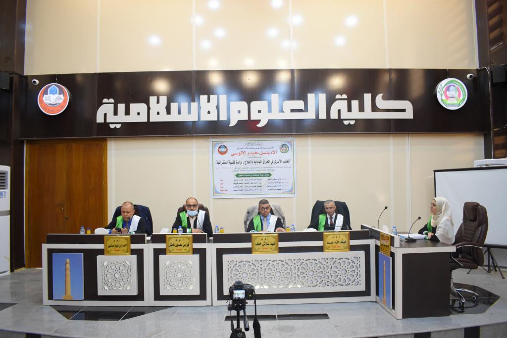 ناقشت كلية العلوم الإسلامية بجامعة الموصل رسالة ماجستير عن (العنف الاسري في العراق الوقاية والعلاج-دراسة فقهية استقرائية)، يوم الخميس الموافق 12/5/2022، حضر جانبا منها الاستاذ الدكتور طه حماد مخلف عميد الكلية وعدد من تدريسيي الكلية.تناولت الرسالة التي تقدمت بها الطالبة (الاء باسل حيدر يونس) في قسم الشريعة العنف الاسري في العراق – الوقاية والعلاج دراسة فقهيةناقشت الرسالة أسباب انتشار العنف الاسري وبيان صوره، وإبراز المعالجات الفقهية التي تحد من هذه الظاهرة التي تفتت الاسرة وتهدد المجتمع.توصلت الرسالة ان الابتعاد عن احكام القرآن والسنة النبوية من أبرز أسباب انتشار العنف الاسري كما ان خروج الانسان عن فطرته وانسانيته هي سبب مهم في ذلك وان المعالجات الفقهية تتمثل في المعاملة الحسنة من قبل جميع افراد الاسرةترأس لجنة المناقشة الأستاذ المساعد الدكتور فراس سعدون فاضل وعضوية كل من الأستاذ المساعد الدكتور فهد شلاش خلف والاستاذ المساعد الدكتور أحمد إبراهيم اسماعيل، وبإشراف وعضوية الاستاذ المساعد الدكتور هيثم حازم عبد. تبارك عمادة الكلية ورئاسة القسم للباحثة ولمشرفها هذا الانجاز العلمي المتميز.