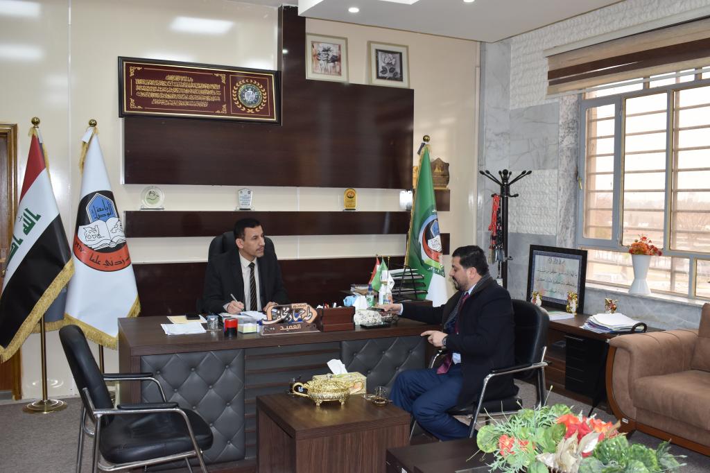 استقبل السيد عميد كلية العلوم الإسلامية الاستاذ الدكتور طه حماد مخلف في مكتبه اليوم الخميس الموافق ٢٧/ ١ / ٢٠٢٢ الدكتور عمر نهاد الموصلي التدريسي في جامعة محمد بن زايد في الإماراتوتخلل اللقاء الذي حضره السادة المعاونين العلمي والإداري في الكلية تبادل وجهات النظر وآلية التعاون بين الكلية والمؤسسات العلمية الأخرى.