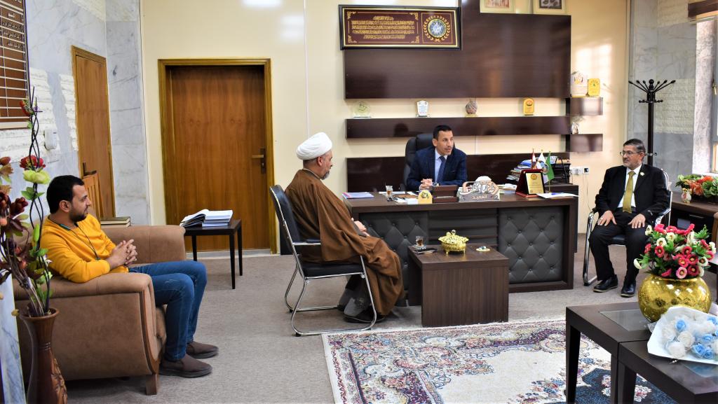 التقى السيد عميد الكلية الأستاذ الدكتور طه حماد مخلف يوم الثلاثاء الموافق28/2/2023 بالشيخ علي القرعاوي معاون رئيس قسم الشؤون الدينية في العتبة الحسينية المقدسة برفقة السيد ميسر الحكيم والسيد مهدي جفات أعضاء اللجنة التحضيرية للأسبوع الثقافي والمؤمل عقده في رحاب جامعة الموصل للفترة من 5-9 آذار 2023 وتناول اللقاء سبل التعاون والتهيئة للأسبوع الثقافي في كافة المجالات العلمية وتحضير الجلسات العلمية وتهيئة قاعات الكلية لهذا النشاط العلمي .