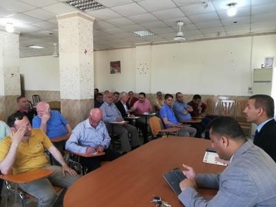 اجتمع السيد عميد كلية العلوم الإسلامية الأستاذ الدكتور طه حماد مخلف المحترم بحضور السيدين المعاونين العلمي والإداري يوم الاثنين الموافق 13/5/2019 بالكادر الوظيفي بالكلية وذلك لبحث العراقيل والمشاكل التي تواجه العمل الوظيفي وسبل حلها مع اقتراب موعد الامتحانات النهائية .وأكد سيادته على ضرورة الالتزام بالدوام الرسمي وحسن التعامل مع الطلاب ومساعدتهم بما يحتاجونه لاجتياز هذه الفترة .