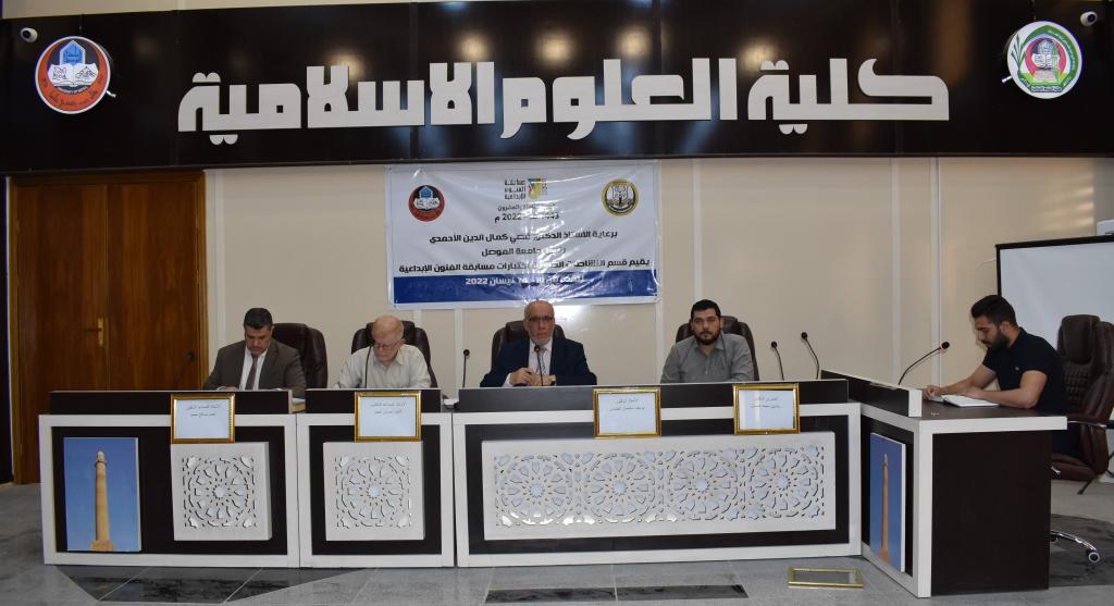 برعاية الأستاذ الدكتور قصي كمال الدين الأحمدي رئيس جامعة الموصل وبحضور السيد عميد كلية العلوم الإسلامية الأستاذ الدكتور طه حماد مخلف أقام قسم النشاطات الطلابية اليوم الأحد الموافق 10/4/2022 . اختبارات مسابقة الفنون الإبداعية للمدة من 10- 14 نيسان 2022 م على قاعة كلية العلوم الإسلامية / جامعة الموصل حيث تألفت لجنة التحكيم الخاصة بالحفظ وتلاوة القرآن الكريم والإنشاد الديني (ذكور) من السادة :