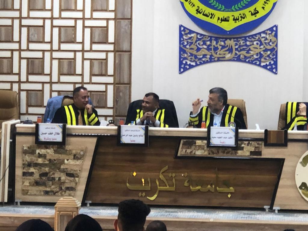 من اروقة جامعة تكريت / كلية التربية للعلوم الإنسانية / قسم علوم القرآن والتربية الإسلامية شارك الأستاذ المساعد الدكتور صالح ياسين عبد الرحمن التدريسي في قسم العقيدة والفكر الإسلامي كأحد اعضاء لجنة مناقشة رسالة الماجستير للطالبة (رانية حسين إبراهيم ) عن رسالتها الموسومة ( الأجوبة المستنبطة على الأسئلة الملتقطة لعبد الرحمن بن احمد بن عبد الرحمن الانصاري الشافعي ت 1123هـ من كتاب الزكاة الى كتاب الهبة والتمليك _دراسة وتحقيق وتعليق) وذلك يوم الأربعاء الموافق 7/12/2022 . وقد تألفت لجنة المناقشة من الدكتور عقيل عبد المجيد رئيساً وعضوية كل من الدكتور الاء عبد الرحمن نعمان والدكتور صالح ياسين عبد الرحمن والدكتور طلال خلف حسين عضواً ومشرفاً.وقد اجيزت الطالبة بشهادة الماجستير وبتقدير مستوفٍ.مبارك للطالبة ولمشرفها هذا الإنجاز العلمي.