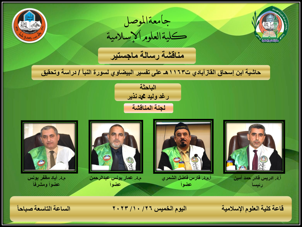 3- أ. د. رمضان حمدون علي / جامعة الموصل – كلية العلوم الاسلامية / عضواً