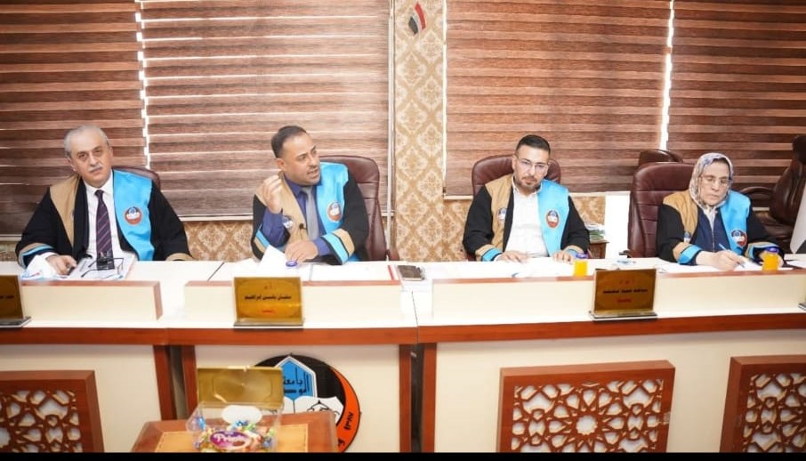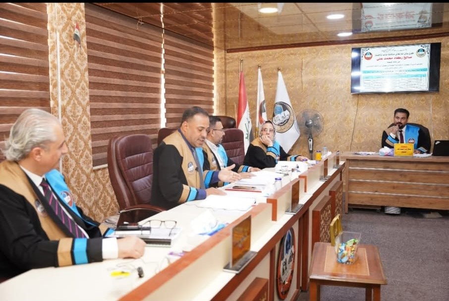 وترأس لجنة المناقشة الاستاذ الدكتور سفيان ياسين إبراهيم / كلية التربية للعلوم الإنسانية / جامعة الموصل وعضوية كل من : الاستاذ المساعد الدكتور ساجد عبد محمد / كلية التربية للعلوم الإنسانية / جامعة الموصل والدكتور عمر سلهم صديق سعيد / كلية العلوم الإسلامية / جامعة الموصل وبأشراف وعضوية الاستاذ المساعد الدكتورة أزهار هادي فاضل / كلية التربية للعلوم الإنسانية / جامعة الموصل.