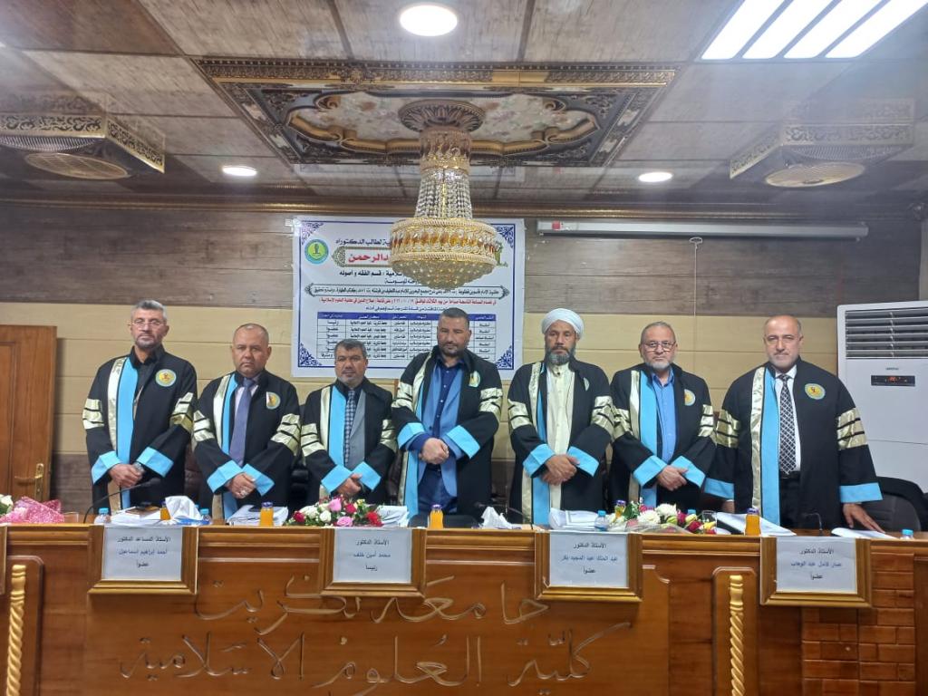 شارك السيد رئيس قسم الشريعة الأستاذ المساعد الدكتور أحمد ابراهيم اسماعيل في عضوية لجنة مناقشة أطروحة دكتوراه للطالب تحسين عبدالله عبدالرحمن عن اطروحته الموسومة (حاشية الإمام قاسم بن قطلوبغا ( ت 879 هـ) على شرح مجمع البحرين للإمام عبداللطيف بن فرشته (801 هـ) كتاب الطهارة _ دراسة وتحقيق )، يوم الثلاثاء الموافق 19/10/2021 على قاعة صلاح الدين بكلية العلوم الإسلامية جامعة تكريت ،تكمن أهمية الحواشي في بيان كثيرٍ من الدقائق العلمية كإيضاح معانٍ غامضةٍ، وفك عباراتٍ، وتبويب مباحث المتون، وتيسير استنباط الأقوال من مضانها، وبيان القيمة العلمية لكتابٍ أو شرح معين، ونحو ذلك، وبالجملة: فلا تخلو حاشية من فوائد. وحاشيةُ الإمام قاسم بن قطلوبغا هذهِ خيرُ مثالٍ على ذلك، والتي نُجْمِل أهمِّيَّتَها من خلال ما يأتي: