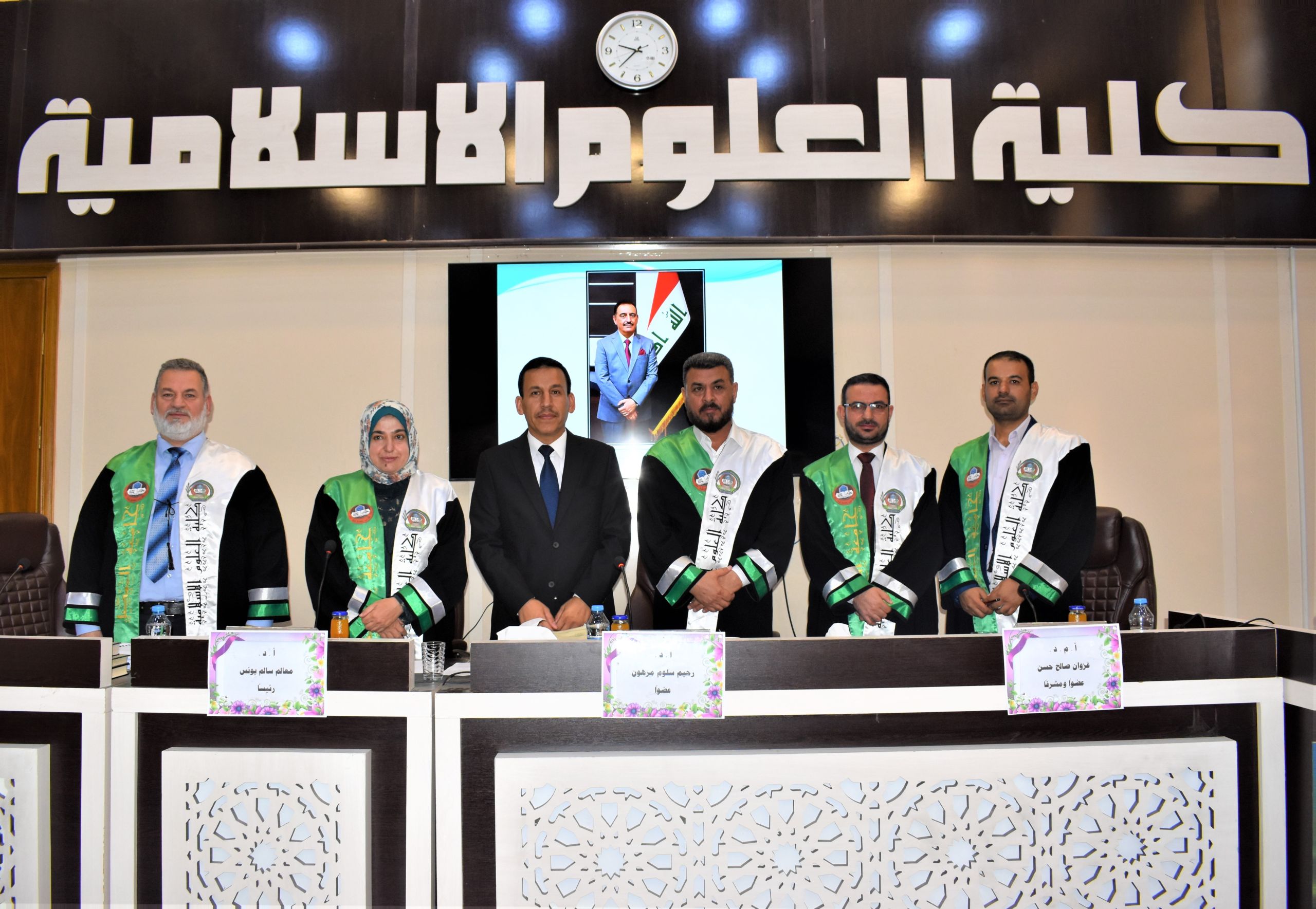 ترأس لجنة المناقشة الأستاذ الدكتورة (معالم سالم يونس) وعضوية كل من الأستاذ الدكتور (رحيم سلوم مرهون) والأستاذ المساعد الدكتور (بشار شعلان عمر) وبإشراف وعضوية الأستاذ المساعد الدكتور (غزوان صالح حسن).