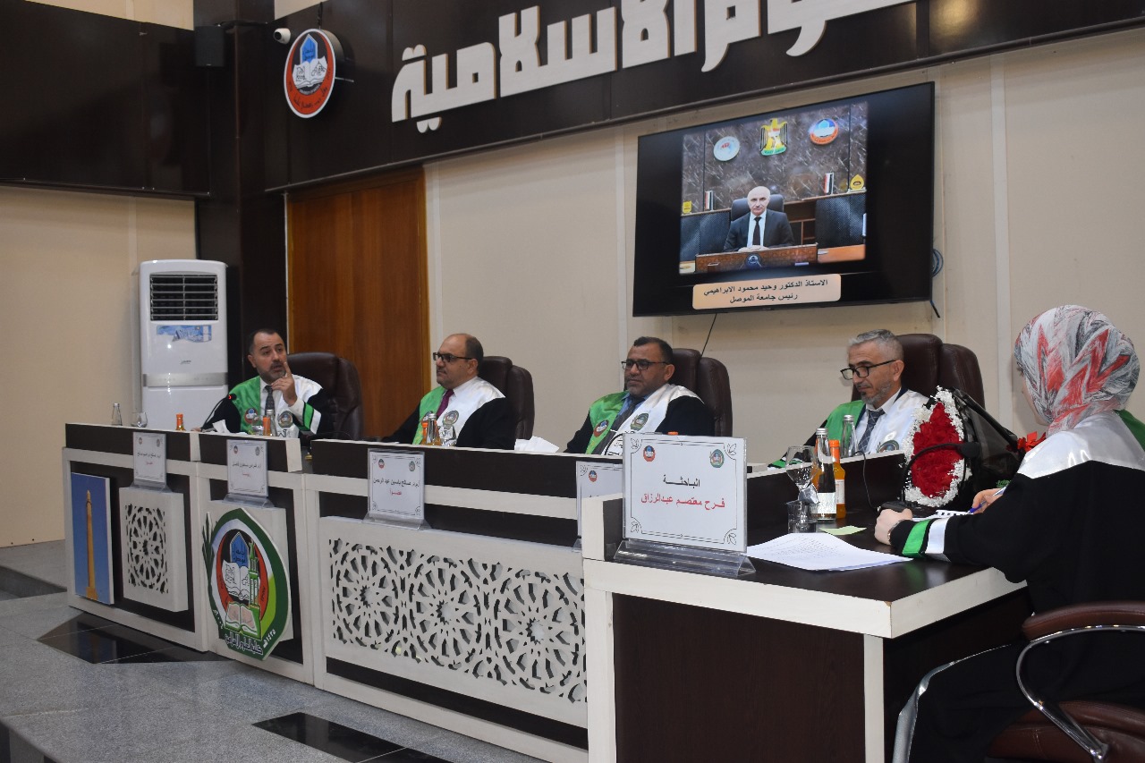 نوقشت هذا اليوم الخميس الموافق 3/7/2025 في كلية العلوم الاسلامية بجامعة الموصل رسالة الماجستير الموسومة ( الاستنباطات الفقهية من الأحاديث النبوية المتضمنة للأيمان والنذور في الكتب الستة – دراسة مقارنة –) .