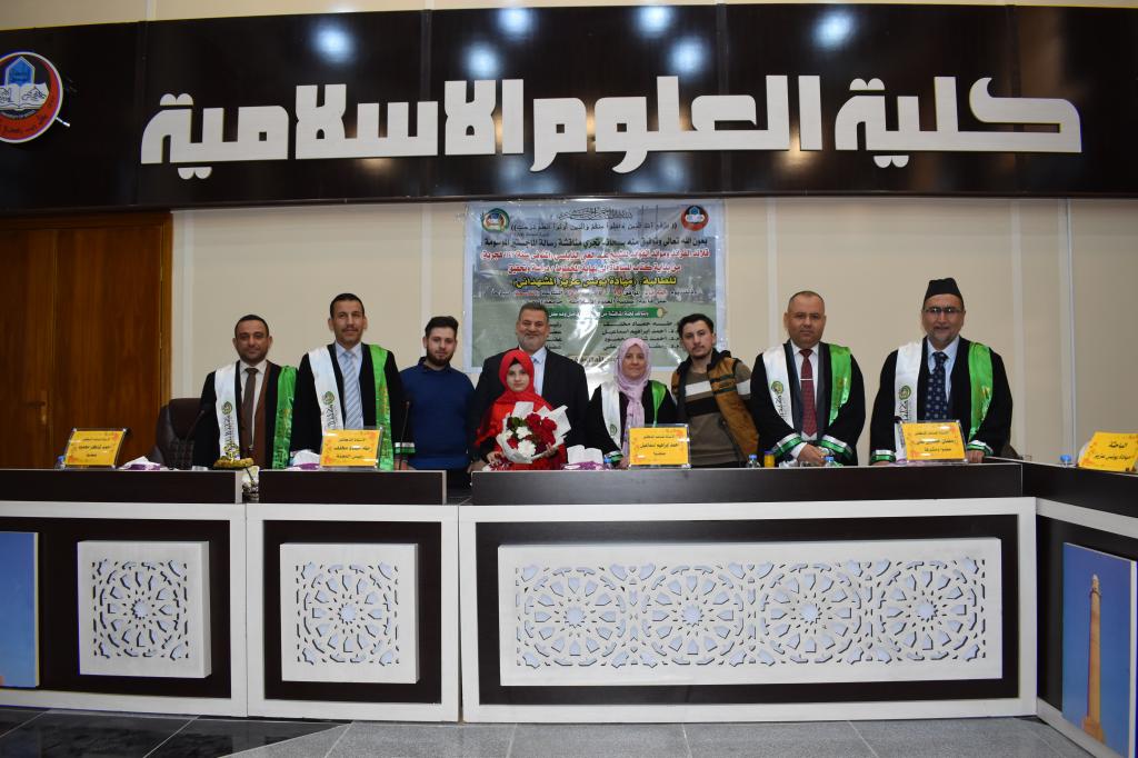 جرت صباح هذا اليوم الثلاثاء الموافق 15/12/2020 في رحاب قاعة كلية العلوم الاسلامية مناقشة طالبة الماجستير ( ميادة يونس عزيز مال الله) في رسالتها الموسومة بـ (قلائد الفرائد وموائد الفوائد للشيخ عبد الغني النابلسي المتوفي سنة (1143 هـ) من بداية كتاب المساقاة الى نهاية المخطوط ، دراسة وتحقيق) في قسم الشريعة .حيث ترأس لجنة المناقشة الاستاذ الدكتور طه حماد مخلف وعضوية كل من الدكتور أحمد ابراهيم اسماعيل والدكتور احمد شاكر محمود والدكتور رمضان حمدون علي عضواً ومشرفاً.بحثت الرسالة : في تحقيق مخطوط (قلائد الفرائد وموائد الفوائد) للشيخ عبد الغني النابلسي المتوفي سنة (1143 هـ) . وسبق التحقيق دراسة عن حياة الشيخ النابلسي مروراً باسمه وأسرته وشيوخه وطلابه وآثاره ثم وفاته ( رحمه الله تعالى ) .كما تناولت الرسالة : إخراج النص المخطوط من كتاب المسافات الى نهاية المخطوط مع مناقشة الأمور المتعلقة بالنص ليكون أثمر للطلبة ومفتاحاً للباحثين في مجال التحقيق .توصلت الرسالة إلى : أهمية المخطوط قلائد الفرائد وموائد الفوائد في المذهب الحنفي لما فيها من دقة علمية في نسبة الأقوال إلى أصلها وذكر مصادر كتب المذهب الحنفي لانجدها إلا في هذا المخطوط . تبارك عمادة كلية العلوم الاسلامية ورئاسة قسم الشريعة للباحثة ولمشرفها هذا الانجاز العلمي المتميز .