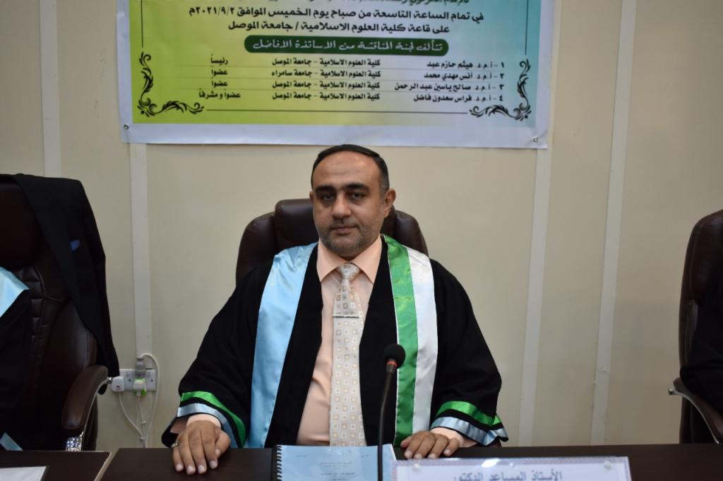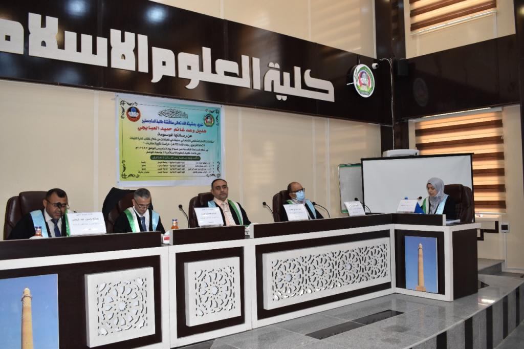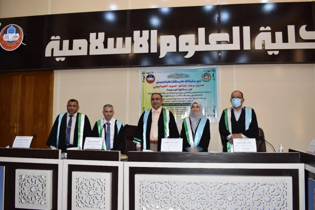 جرت صباح اليوم الخميس الموافق 2/9/2021 في رحاب قاعة كلية العلوم الإسلامية مناقشة طالبة الماجستير (هديل وعد غانم حميد) في قسم الشريعة عن رسالتها الموسومة بـ (مخالفات الإمام الشافعي للإمام أبي حنيفة في العبادات من خلال كتاب الغرة المنيفة للإمام الغزنوي (رحمه الله) (ت: 773هـ) –دراسة فقهية مقارنة). ترأس لجنة المناقشة الأستاذ المساعد الدكتور هيثم حازم عبد كلية العلوم الإسلامية وعضوية؛ الأستاذ المساعد الدكتور أنس مهدي محمد (جامعة سامراء) والأستاذ المساعد الدكتور صالح ياسين عبد الرحمن والأستاذ المساعد الدكتور فراس سعدون فاضل عضواً ومشرفاً.بحثت الرسالة في المسائل الفقهية التي خالف فيها الإمام الشافعي الإمام ابا حنيفة في باب العبادات تحديدا وهذه المسائل ورد ذكرها في كتاب الغرة المنيفة الذي صنفه الإمام الغزنوي الحنفي وجمع فيه هذا النوع من المسائل؛ وفق منهجية البحث الفقهي المقارن مع بيان سبب الاختلاف الفقهي.كما تناولت الرسالة أدلة كل قول فقهي يرد في المسألة موضوع البحث وتحليل الأدلة ومناقشتها مع بيان الراجح من الأقوال وفق آلية واضحة منضبطة.توصلت الرسالة إلى أن الاختلاف الفقهي نابع من اختلاف النظرة والتوجيه لأدلة الأحكام الفقهية؛ وما حصل من اختلاف فقهي بين الشافعي وابي حنيفة في بعض المسائل الفقهية فإن مرده إلى الدليل وكيفية الاستدلال به. تبارك عمادة كلية العلوم الإسلامية ورئاسة قسم الشريعة للباحثة ولمشرفها هذا الانجاز العلمي المتميز.