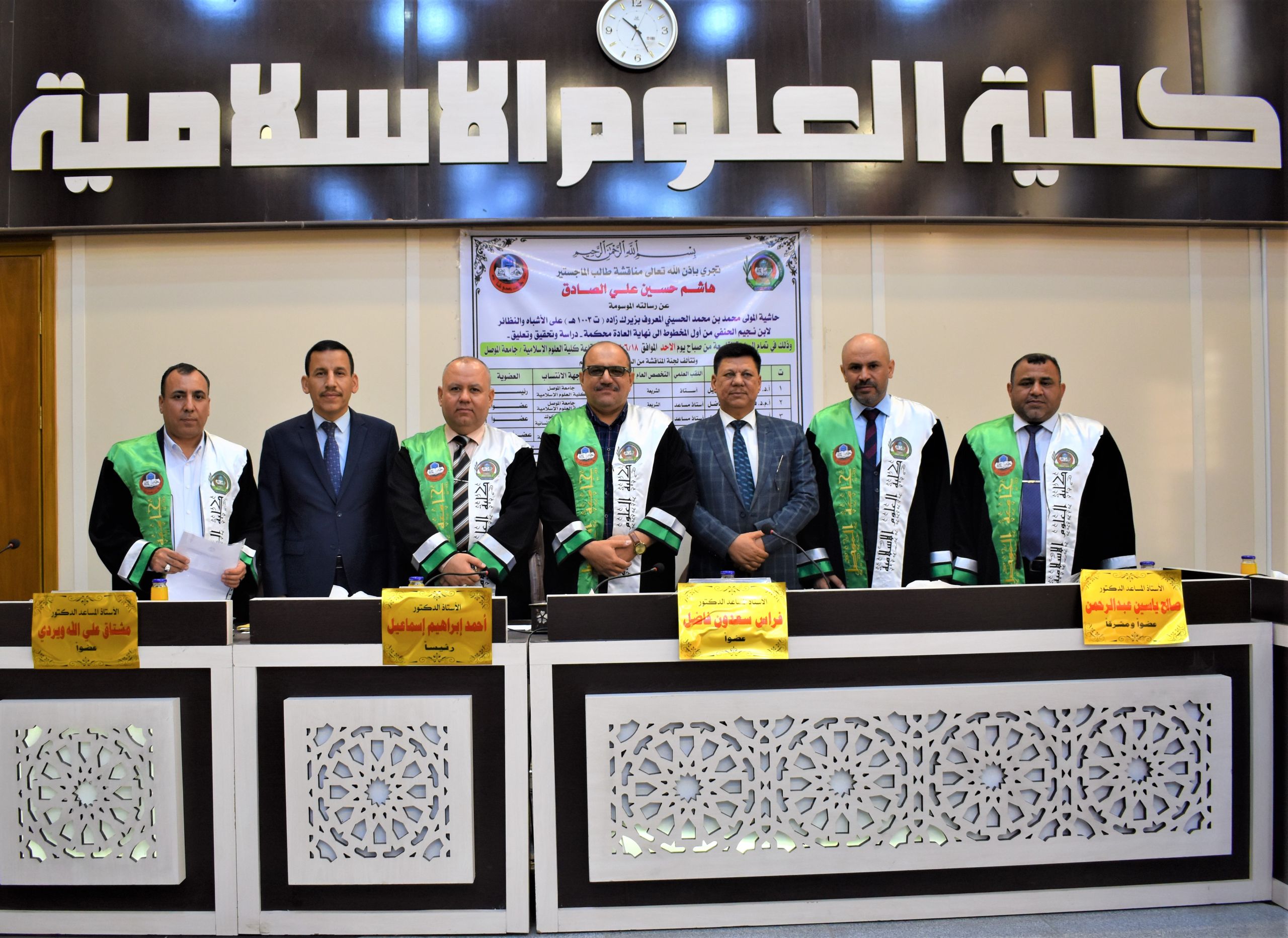نوقشت هذا اليوم الاحد الموافق 18/6/2023 في كلية العلوم الإسلامية بجامعة الموصل رسالة الماجستير الموسومة (حاشية المولى محمد بن محمد الحسيني المعروف بزيرك زاده ت 1003هـ على الاشباه والنظائر لابن نجيم الحنفي من اول المخطوط الى نهاية العادة محكّمة -دراسة وتحقيق وتعليق-)، حضر جانبا منها الأستاذ الدكتور طه حماد مخلف عميد الكلية والأستاذ الدكتور رافت لؤي حسين معاون العميد للشؤون العلمية والدراسات العليا والأستاذ المساعد الدكتور ثابت مهدي حمادي معاون العميد للشؤون الإدارية والمالية وعدد من التدريسيين.