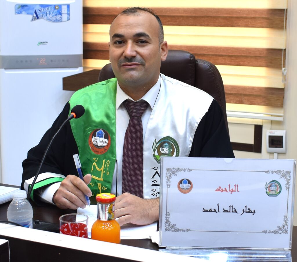 ترأس لجنة المناقشة الأستاذ الدكتور ( أحمد إبراهيم إسماعيل ) وعضوية كل من الأستاذ الدكتور ( فواز إسماعيل محمد) والأستاذ المساعد الدكتورة (سمية طارق خضر) وبإشراف الأستاذ الدكتور ( رمضان حمدون علي) .