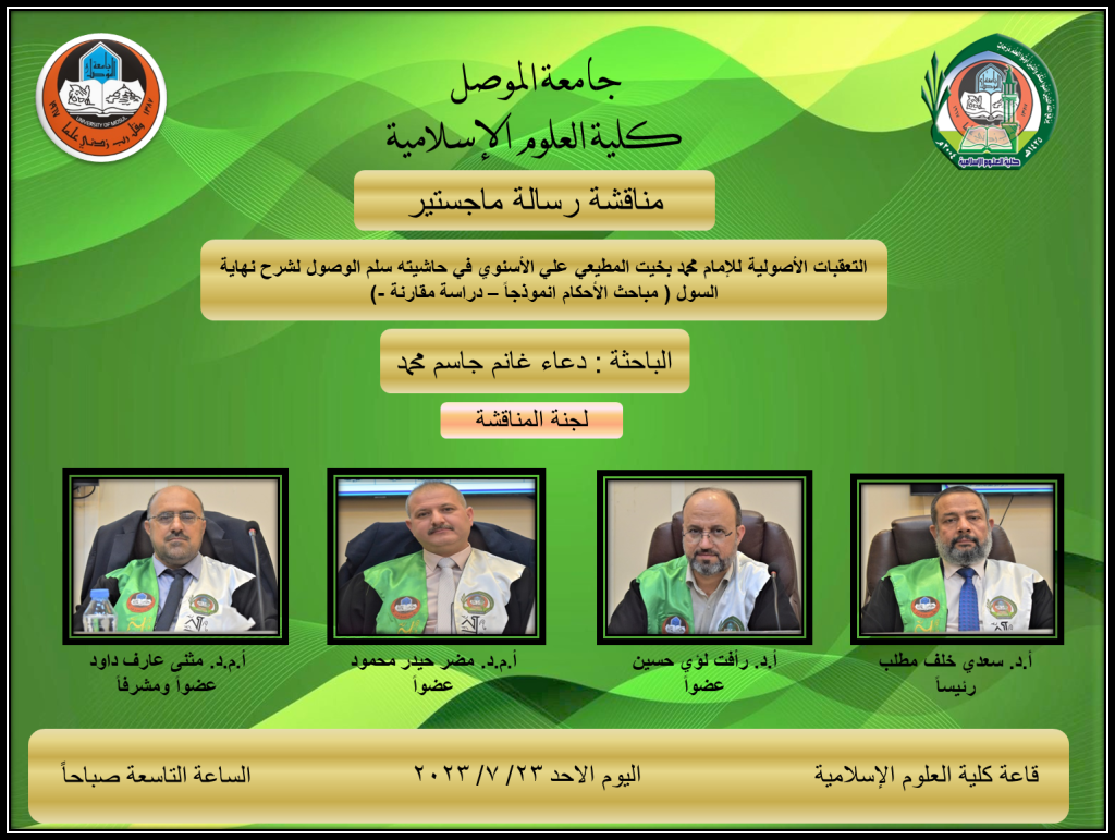 موعد مناقشة رسالة دبلوم عالي / الأمن الفكري في كلية العلوم الإسلامية