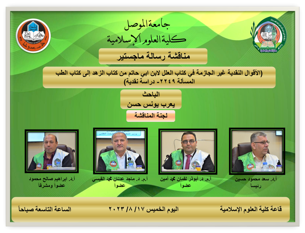 مناقشة رسالة ماجستير في كلية العلوم الإسلامية
