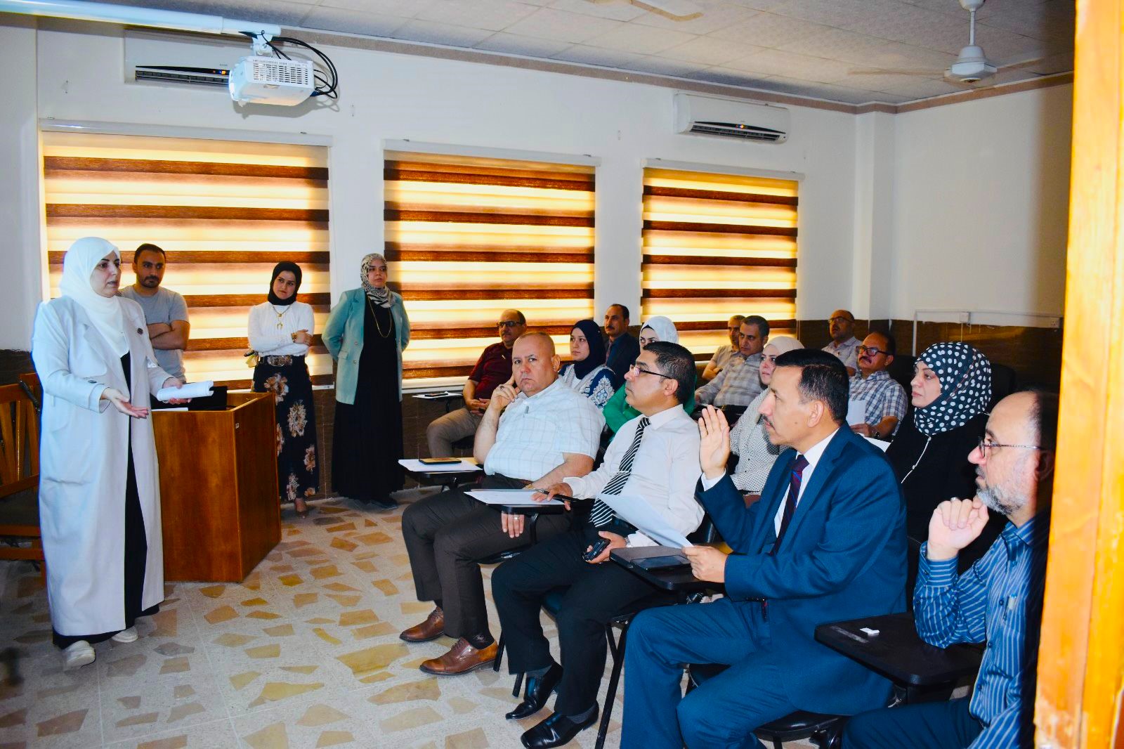 برعاية السيد رئيس جامعة الموصل الأستاذ الدكتور قصي كمال الدين الاحمدي وبإشراف وحضور السيد عميد الكلية الأستاذ الدكتور طه حماد مخلف والسيد المعاون العلمي الأستاذ الدكتور رأفت لؤي حسين والسيدة مسؤولة شعبة الدراسات العليا الأستاذ المساعد الدكتورة ضحى سمير يونس وعدد من التدريسيين.