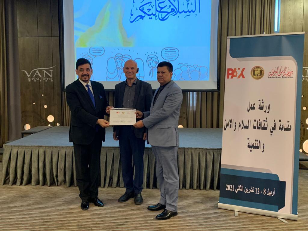 شارك السيد معاون العميد للشؤون الإدارية في كلية العلوم الإسلامية الاستاذ المساعد الدكتور ثابت مهدي حمادي في الورشة التدريبية التي أقامتها جمعية الامل العراقية بالتعاون مع مستشارية الأمن القومي على مدار خمسة أيام بواقع ٣٠ ساعة تدريبية للفترة من ٨ إلى ١٢ تشرين الثاني ٢٠٢١ في أربيل. وتضمنت الورشة محاضرات مهمة في ثقافة السلام والأمن والتنمية وشارك فيه أساتذة من مختلف الجامعات العراقية.