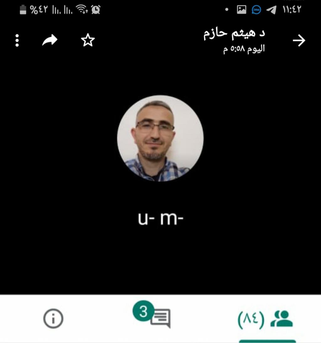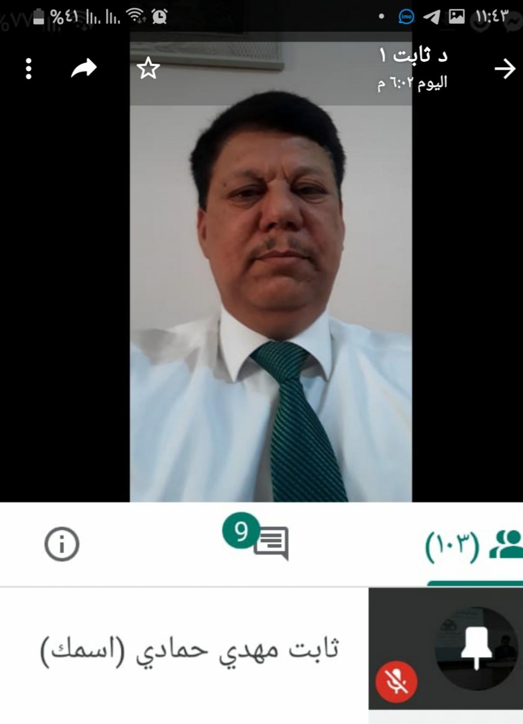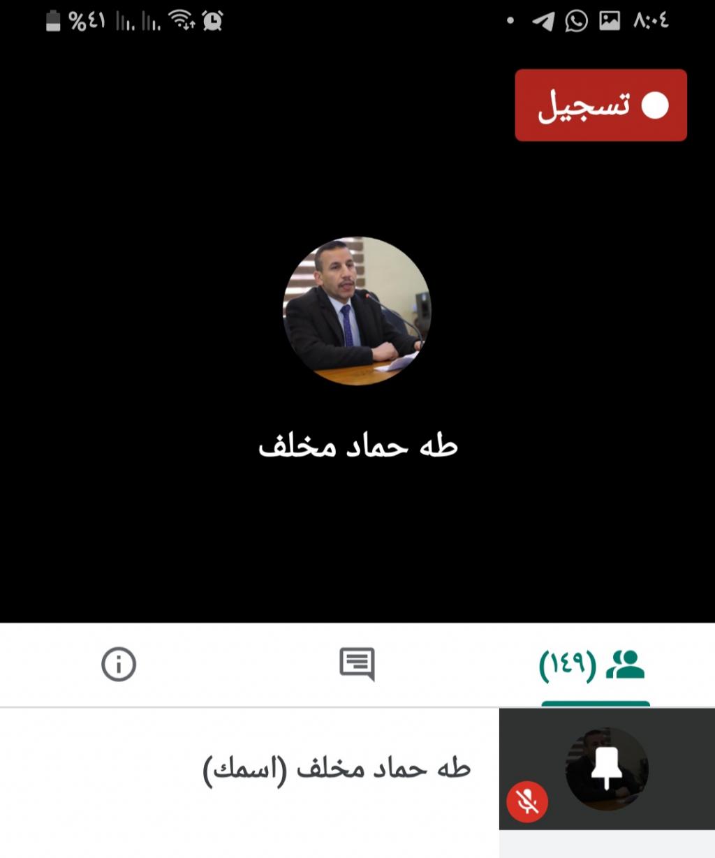 ورشة عمل حول التعليم الإلكتروني ومعوقاتهشارك السيد عميد كلية العلوم الإسلامية مع السيد المعاون العلمي والسادة رؤساء الأقسام مساء السبت الموافق ١٨ / ٤ / ٢٠٢٠ في ورشة العمل حول آلية تطبيق التعليم الإلكتروني ومعوقاته والتي انعقدت برئاسة السيد المساعد العلمي الدكتور منير سالم المحترم مع مدير مركز الحاسبة الالكترونية لشرح آلية ملئ الاستمارة الالكترونية وما يتعلق بها في تحديث المعلومات عبر برنامج meet .