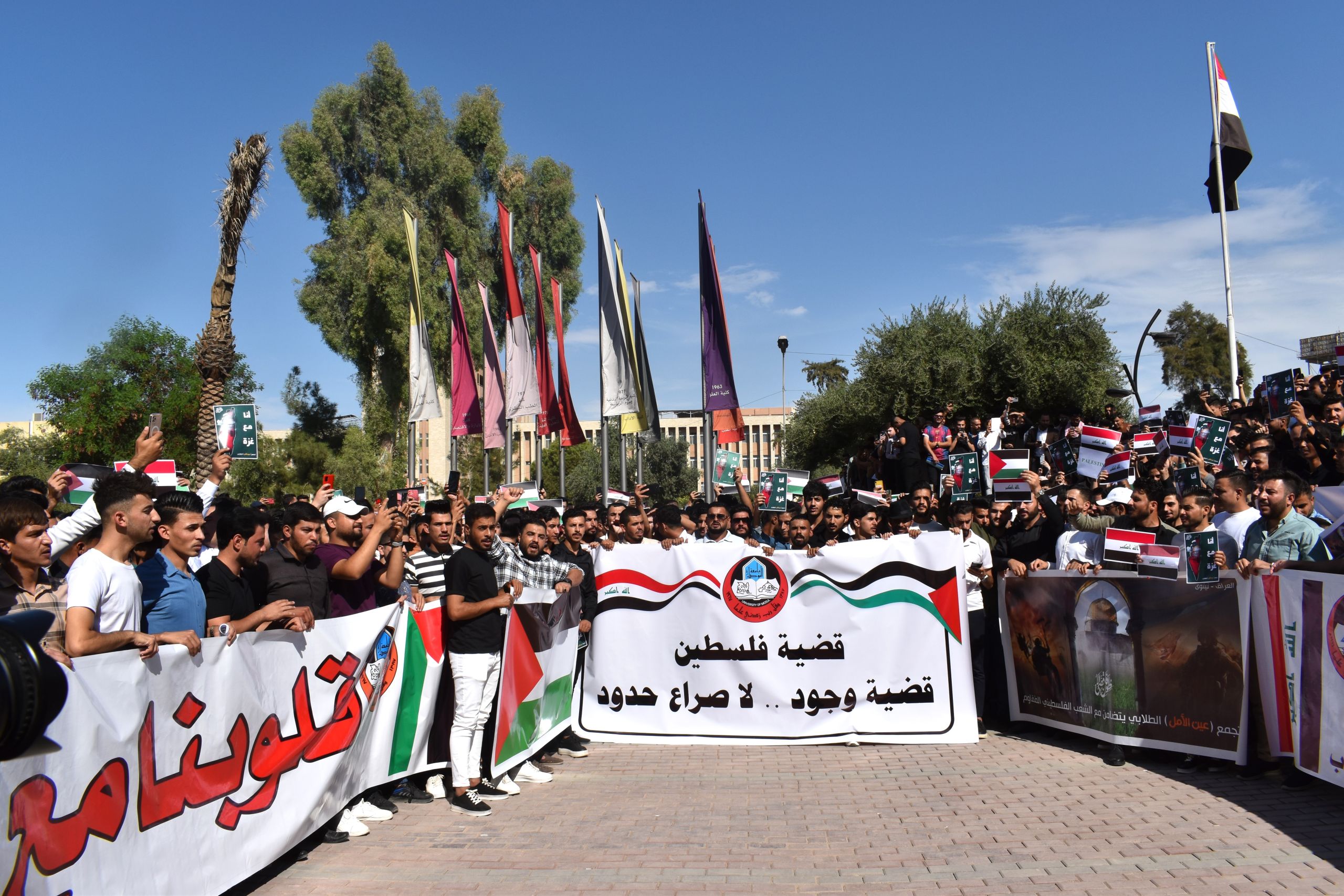 أقيمت اليوم الاثنين الموافق 16/10/2023 امام قاعة المسرح الكبير في جامعة الموصل الوقفة التضامنية مع الشعب الفلسطيني , وقد حضر السيد عميد كلية العلوم الإسلامية الأستاذ الدكتور طه حماد مخلف مع السادة المعاونين ورؤساء الأقسام العلمية والكادر الوظيفي وطلبة الأقسام هذه الوقفة لمناصرة الشعب الفلسطيني في محنته ضد العدو الصهيوني المحتل .