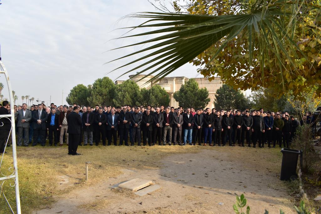 أقامت كلية العلوم الإسلامية صباح هذا اليوم الأحد الموافق 1/12/2019 وقفة حداد تضمنت صلاة الغائب على أرواح شهداء العراق جميعاً وشهداء محافظتي ذي قار والنجف الأشرف وقد أمّ السيد معاون العميد للشؤون الإدارية والمكلف بإدارة الكلية الأستاذ المساعد الدكتور باسل خلف حمود جموع المصلين من الأساتذة والموظفين والطلبة الذين تجمعوا في الباحة الأمامية للكلية فضلاً عن قراءة سورة الفاتحة والدعاء والتضرع إلى الله بان يحفظ وحدة العراق أرضاً وشعباً كما وجه السيد العميد أبناءه الطلبة بالمحافظة على استمرار الدوام وسير العملية التعليمية لأنها جزء من الوفاء لدماء الشهداء .