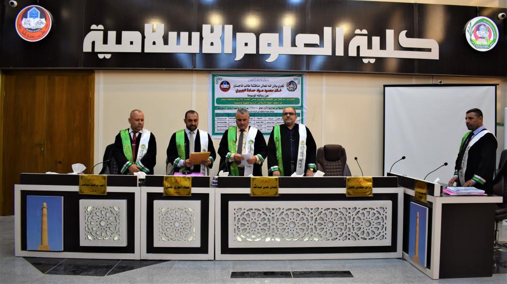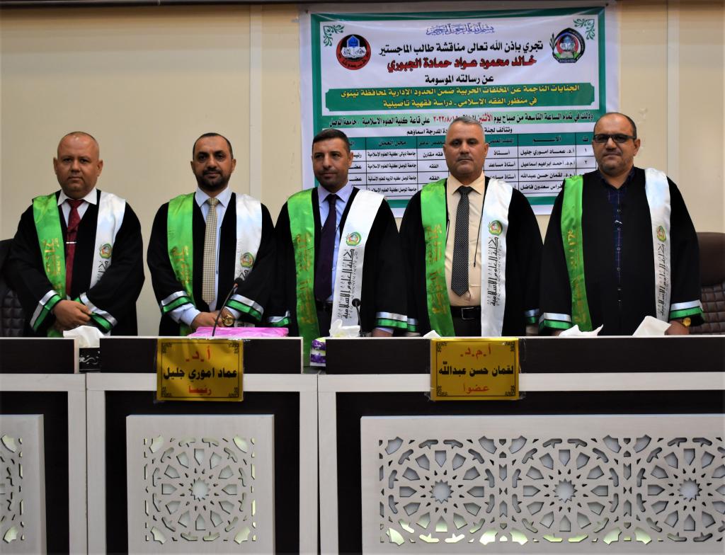 ناقشت كلية العلوم الإسلامية بجامعة الموصل رسالة ماجستير عن (الجنايات الناجمة عن المخلفات الحربية ضمن الحدود الإدارية لمحافظة نينوى في منظور الفقه الإسلامي-دراسة فقهية تأصيلية)، يوم الاثنين الموافق 15/8/2022، حضر جانبا منها الاستاذ الدكتور طه حماد مخلف عميد الكلية ورؤساء الأقسام العلمية وعدد من تدريسيي الكلية.تناولت الرسالة التي تقدم بها الطالب (خالد محمود عواد) في قسم الشريعة الجنايات الناجمة عن المخلفات الحربية بمختلف صورها سواء كانت الجناية مزهقة للنفس أو كانت على مادون النفس من خلال بيان الأحكام الفقهية التي تترتب على هذه الجنايات .تطرقت الرسالة المخلفات الحربية وصورها وأنواعها والجنايات الناجمة عنها وأحكام هذه الجنايات من منظور الفقه الإسلامي من خلال دراسة فقهية منهجية مقارنة .تهدف الرسالة بيان الأحكام الفقهية التي تترتب على الجنايات الناجمة عن المخلفات الحربية بعد تكرار الحوادث التي نجمت عن هذه المخلفات وتركزت الدراسة على محافظة نينوى ضمن حدودها الإدارية .ترأس لجنة المناقشة الاستاذ الدكتور عماد اموري جليل وعضوية كل من الأستاذ المساعد الدكتور احمد إبراهيم اسماعيل والأستاذ المساعد الدكتور لقمان حسن عبد الله والأستاذ المساعد الدكتور فراس سعدون فاضل عضواً ومشرفاً. تبارك عمادة الكلية ورئاسة القسم للباحث ولمشرفه هذا الانجاز العلمي المتميز.