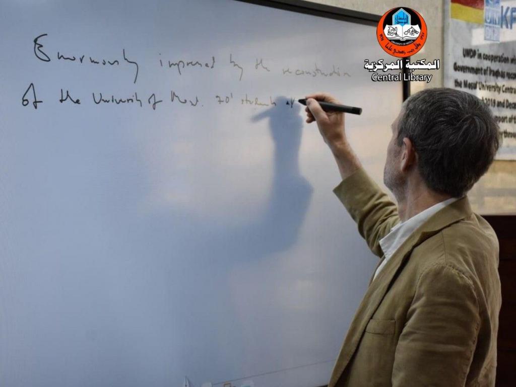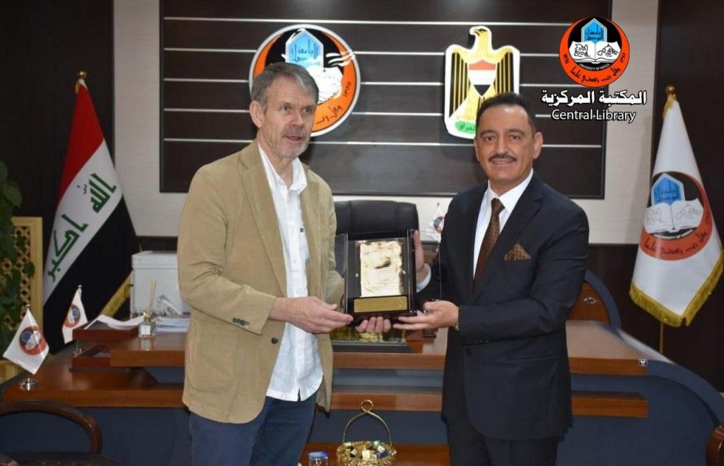 في إطار سعي جامعة الموصل لديمومة التنسيق و التعاون المشترك مابين جامعة الموصل و الشخصيات الدبلوماسية وبالتعاون مع فريق برنامج الأمم المتحدة الإنمائي، استقبل الاستاذ الدكتور قصي الاحمدي رئيس جامعة الموصل سعادة السفير السويدي السيد جوناس لوفين والوفد المرافق له بحضور السادة مساعدي رئيس جامعة الموصل وعدد من مسؤولي الادارات في رئاسة الجامعة، وتحدث الاستاذ سيف الاشقر الامين العام لمكتبات جامعة الموصل خلال الزيارة عن القاعات ومحتوياتها وكذلك الخدمات التي تقدمها المكتبة والخطط التي يتم تنفيذها باشراف السيد رئيس جامعة الموصل، وقد ابدى سعادة السفير السويدي اعجابه بهذا الانجاز وتوفير الخدمات مؤكداً على انه سيكون هنالك خطط لتعزيز التعاون ستتم بالتنسيق بين السفارة السويدية ورئاسة جامعة الموصل.