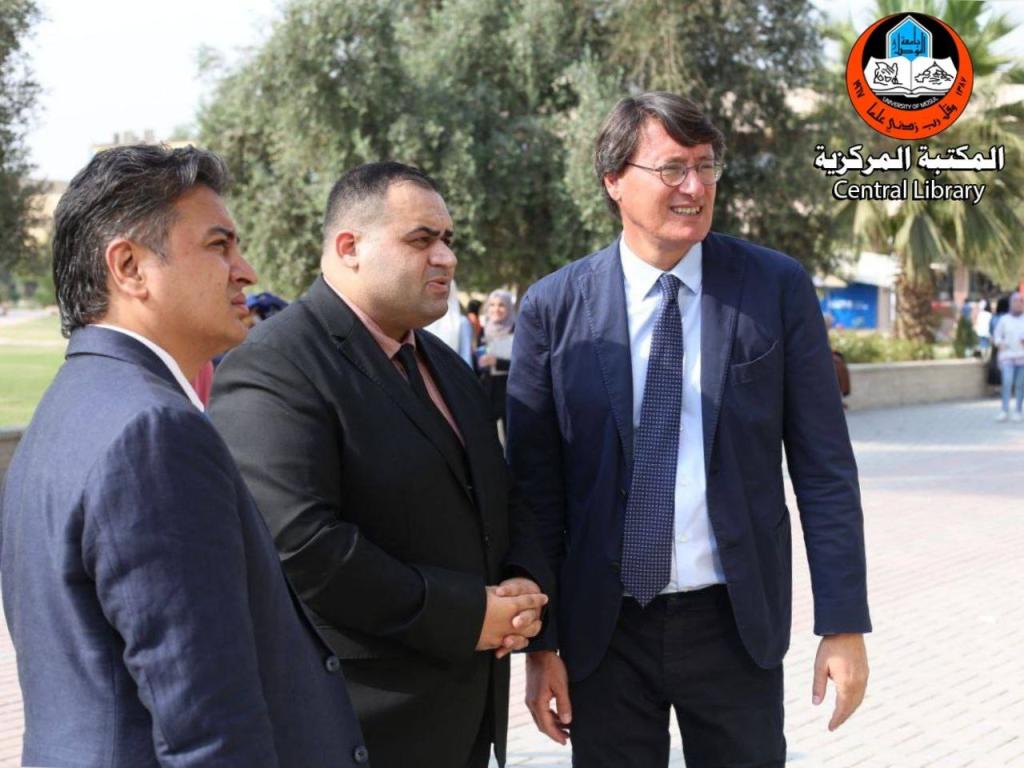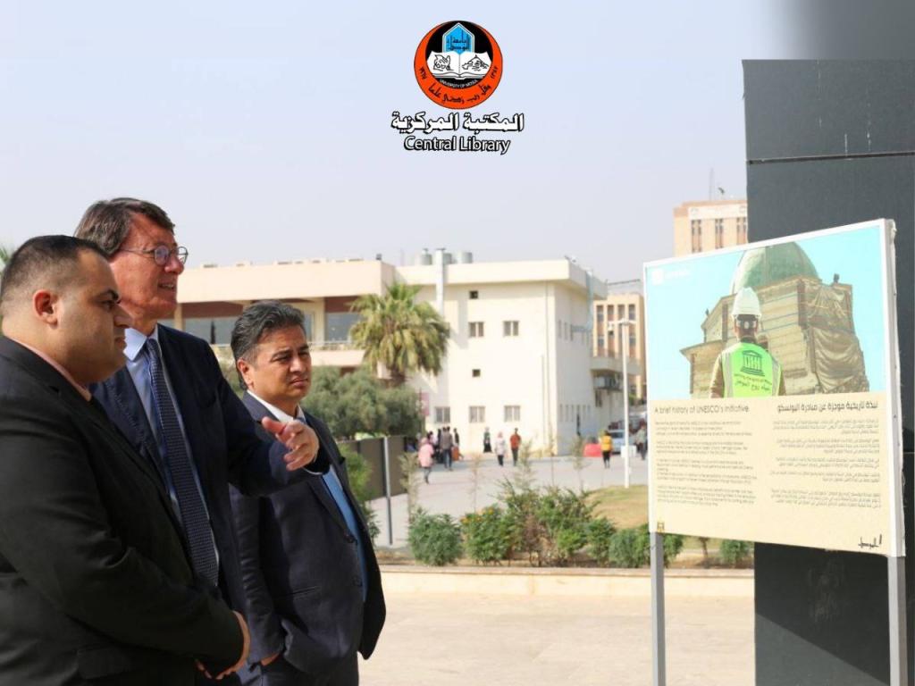 تجسيداً لدور جامعة الموصل في ديمومة التعاون والترحيب بكافة ضيوفها، وبرعاية الاستاذ الدكتور قصي الاحمدي رئيس جامعة الموصل، استقبل الاستاذ سيف الاشقر الامين العام لمكتبات جامعة الموصل السيد باولو فونتاني/ مدير مكتب اليونسكو في العراق والسيد سانتوش خاطري/ رئيس التعليم في مكتب اليونسكو في العراق والسيدة غادة جرجي/ مسؤول مشاريع في مكتب اليونسكو للعراق وتم افتتاح معرض اليونسكو الصوري في المكتبة المركزية والذي يسلط الضوء على النشاطات التي تقوم فيها اليونسكو بمجالات حفظ التراث و الثقافة و التعليم في محافظة نينوى واعطاء الطلبة والباحثين المعلومات حول اهمية هذي البرامج للمجتمع والعالم، وخلال الزيارة اطلع وفد اليونسكو على النشاط الذي يقام بالتعاون مع مؤسسة الهدى التعليمية في اروقة المكتبة المركزية والمتمثل بمتحف نينوى الرقمي وابدى الوفد اعجابه بالجهود المبذولة في هذا النشاط والتعاون المثمر الذي تبديه المكتبة المركزية في جامعة الموصل مؤكدين حرصهم على استمرار التعاون المشترك.
