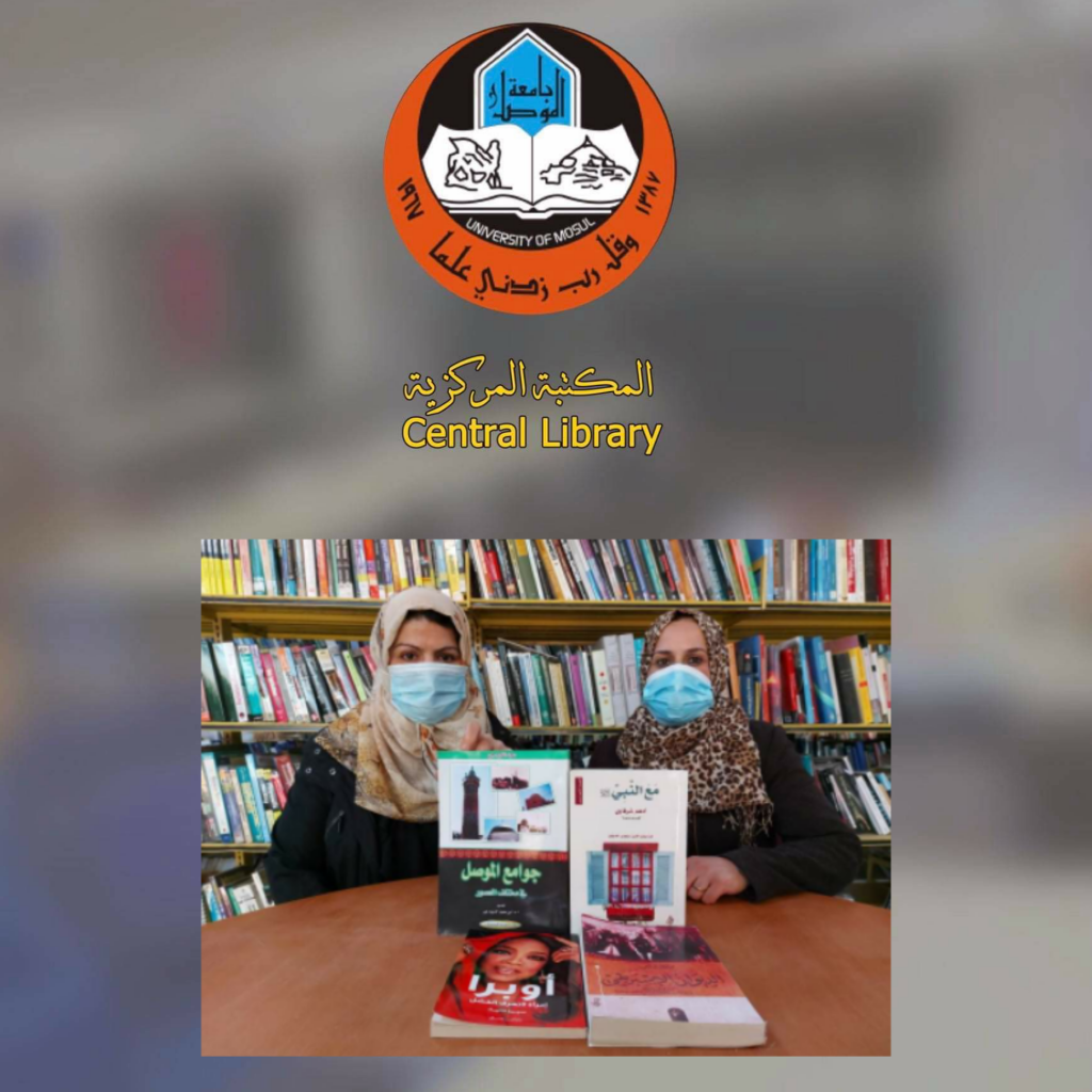 منتسبتان في وحدة التزويد تهديان المكتبة مجموعة من الكتب المتنوعة.