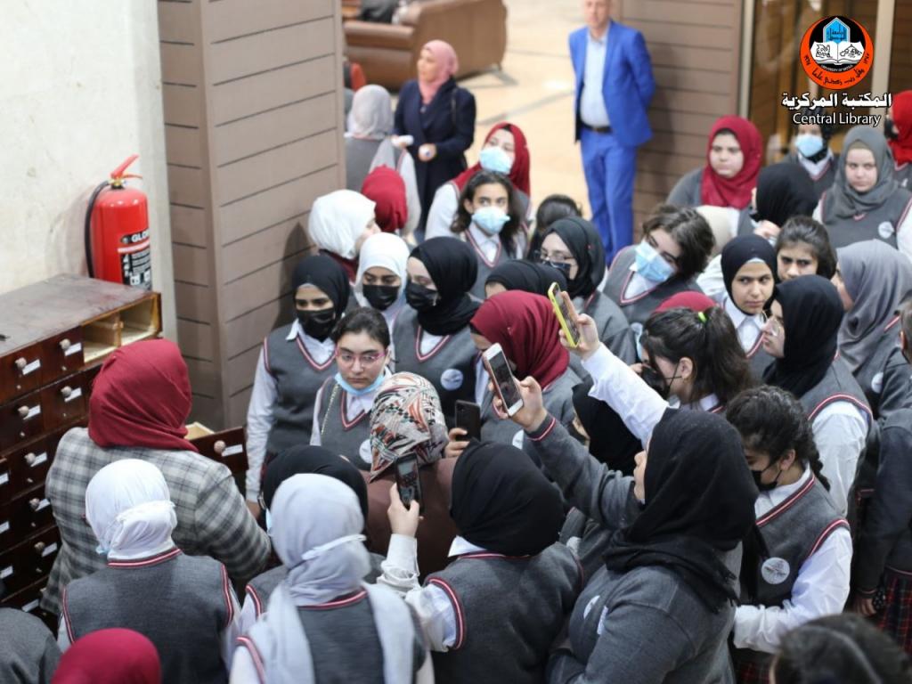 ضمن توجه جامعة الموصل بالانفتاح على المجتمع والتواصل الدائم مع مؤسساته التعليمية والتربوية وبمتابعة من الامانة العامة لمكتبات جامعة الموصل قام وفد من اساتذة وطالبات ثانوية ارض الرافدين الاهلية للبنات اليوم الثلاثاء الموافق 15/3/2022 بزيارة علمية الى المكتبة المركزية في جامعة الموصل بغية الاطلاع على هذا الصرح العلمي والثقافي الكبير في الجامعة وتعريف الطالبات باهمية المكتبة والكتاب في بناء الانسان والمجتمع على حد سواء وقد استمع الوفد الزائر اثناء تجواله بين اروقة المكتبة الى شرح مفصل قدم لهم من قبل السيدة رفل خالد ال حمندي مسؤولة شعبة خدمات المستفيدين تناولت فيه الكيفية المثلى للاستفادة من الخدمات التي تقدمها المكتبة للمستفيدين للطلبة والباحثين ، من جانبها عبرت ادارة ثانوية ارض الرافدين الاهلية للبنات عن تثمينها لحفاوة الاستقبال والجهود المبذولة من قبل ادارة وكادر المكتبة للمساهمة في انجاح الزيارة على الاصعدة كافة خدمة للمسيرة العلمية في بلدنا العزيز