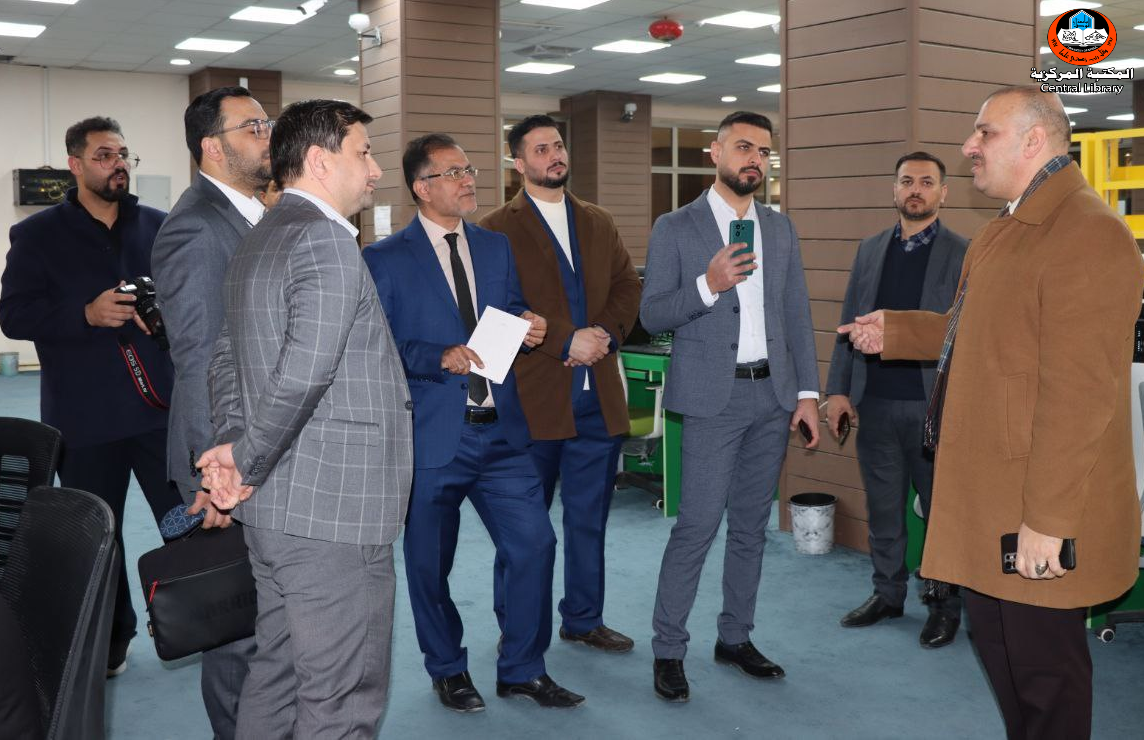وكان في استقبال الوفد الأستاذ المساعد محمد جاسم محمد، الأمين العام للمكتبة المركزية، حيث جرى خلال الزيارة استعراض أقسام المكتبة المختلفة والاطلاع على وحدات الفهرسة والتصنيف والمصادر الورقية والإلكترونية إضافة إلى الجهود المبذولة في مجال التحول الرقمي وحفظ وصيانة المخطوطات وتطوير الخدمات المعلوماتية. حيث أبدى الوفد إعجابه بمستوى التنظيم والتحديث الذي تشهده المكتبة المركزية ولاسيما اشتراكاتها في قواعد البيانات العالمية الرصينة مثل JSTOR وResearch4Life، والمستودع