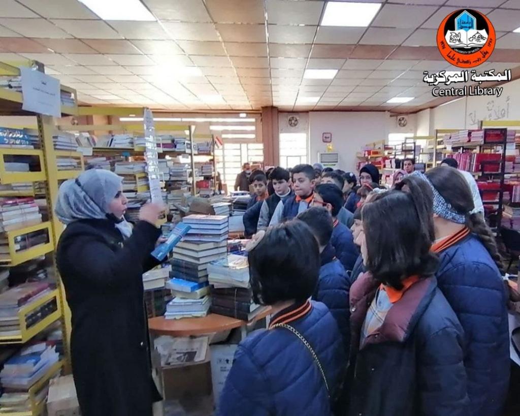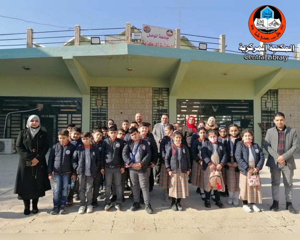 انسجاما مع توجه جامعة الموصل للانفتاح على المجتمع بمؤسساته التربوية و التعليمية كافة زار وفد من مدرسة” الرواد الاهلية ” يتقدمهم السيد طارق محمد داؤد العزي مدير المدرسة و لفيف من اساتذة و تلاميذ الصفين الخامس و السادس الابتدائي فيها يومي الاثنين و الثلاثاء الموافقين 2021-12-28-27استمعوا في مقدمة الزيارة الى كلمة ترحيبية عبر من خلالها الاستاذ سيف الاشقر الامين العام لمكتبات الجامعة عن تشجيع المكتبة الدائم لهكذا زيارات علمية لبراعم العلم في مدينة الموصل ليتمكنوا من خلالها على الوقوف على اهمية الكتاب و المكتبة و دورهما البارز في تقدم الافراد و الشعوب و على وجه الخصوص المكتبة المركزية التي عملت جاهدة على تقديم افضل الخدمات للطلبة و الباحثين في جامعة الموصل منذ تأسيسها الذي تزامن مع تأسيس الجامعة عام 1967 مما يدل على مدى الدور المعرفي الكبير الذي رسم لها ان تضطلع به فضلا عن شرح فني تفصيلي قدمته للتلاميذ م.م زينة طارق دحام مسؤولة شعبة التعليم المستمر في المكتبة المركزية وضحت من خلاله للتلاميذ الية الاستعارة في المكتبة بانواعها الداخلية و الخارجية الورقية و الالكترونية و التي تعمل ادارة المكتبة على ان تكون مواكبة لاحدث المستجدات في العمل المكتبي في الجامعات العالمية المتقدمة ، من جانبه عبر السيد طارق العزي مدير المدرسة عن شكره و تقديره لحفاوة الاستقبال مؤكدا في الوقت ذاته على الجهود الحثيثة التي يبذلها العاملين في هذا الصرح المعرفي الكبير خدمة للمسيرة العلمية في بلدنا العزيز