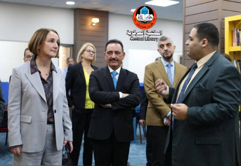 وفد السفارة الالمانية و وفد بنك التنمية الألماني برفقة فريق برنامج الأمم المتحدة الإنمائي يزورون المكتبة المركزية