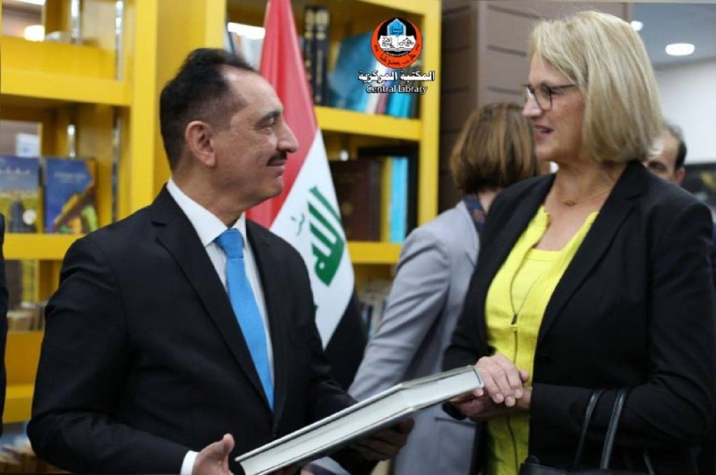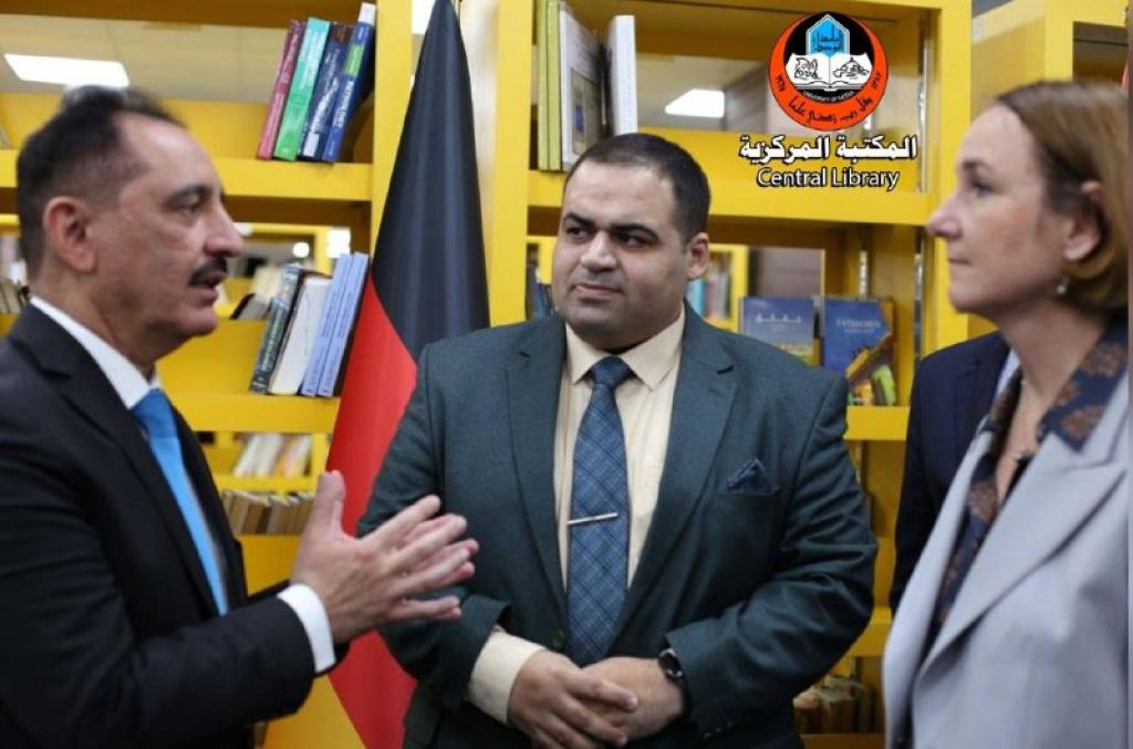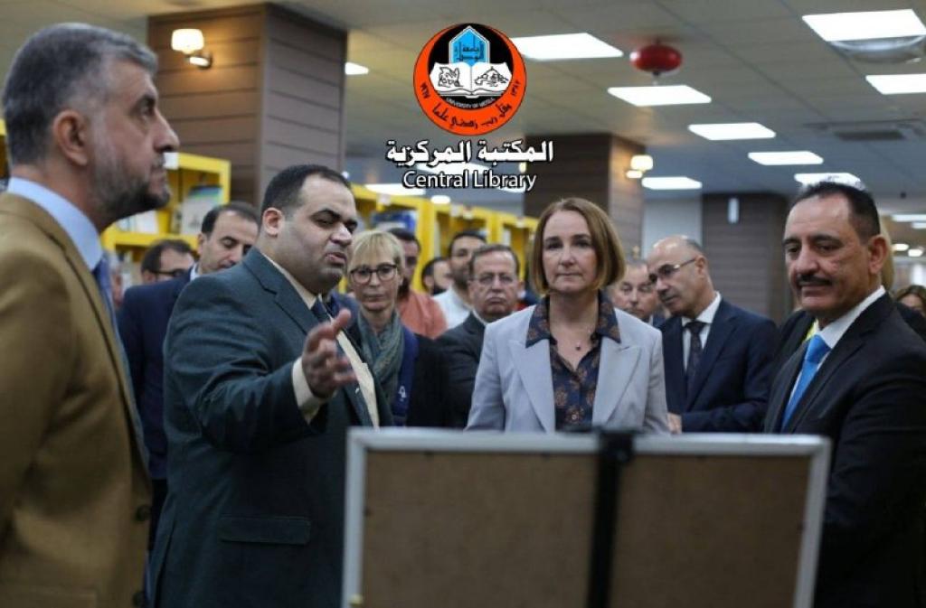 ‎ ضمن سعي جامعة الموصل لديمومة التنسيق و التعاون المشترك مابين جامعة الموصل و المؤسسات الرصينة وبالتعاون مع فريق برنامج الأمم المتحدة الإنمائي ، استقبل الاستاذ الدكتور قصي الاحمدي رئيس جامعة الموصل وعدد من مسؤولي الادارات في رئاسة الجامعة وفد السفارة الالمانية و وفد بنك التنمية الألماني برفقة فريق برنامج الأمم المتحدة الإنمائي وتحدث الاستاذ سيف الاشقر الامين العام لمكتبات جامعة الموصل خلال الزيارة عن الخدمات التي تقدمها المكتبة والخطط التي يتم تنفيذها باشراف السيد رئيس جامعة الموصل وبجهود متميزة من كوادر المكتبة، وقدم الوفد الزائر بعض الكتب كاهداء للمكتبة، وقد ابدى الوفد الزائر اعجابه بهذا بما يتم تحقيقه مؤكداً على استمرار التواصل للعمل في مجالات خدمة المجتمع.