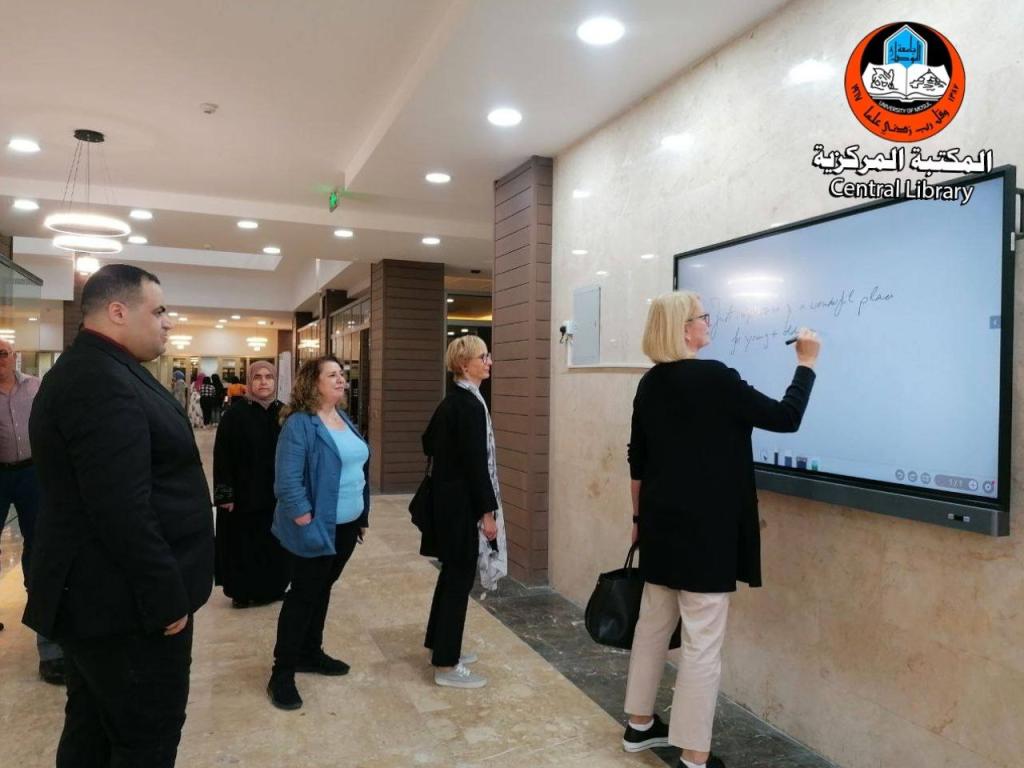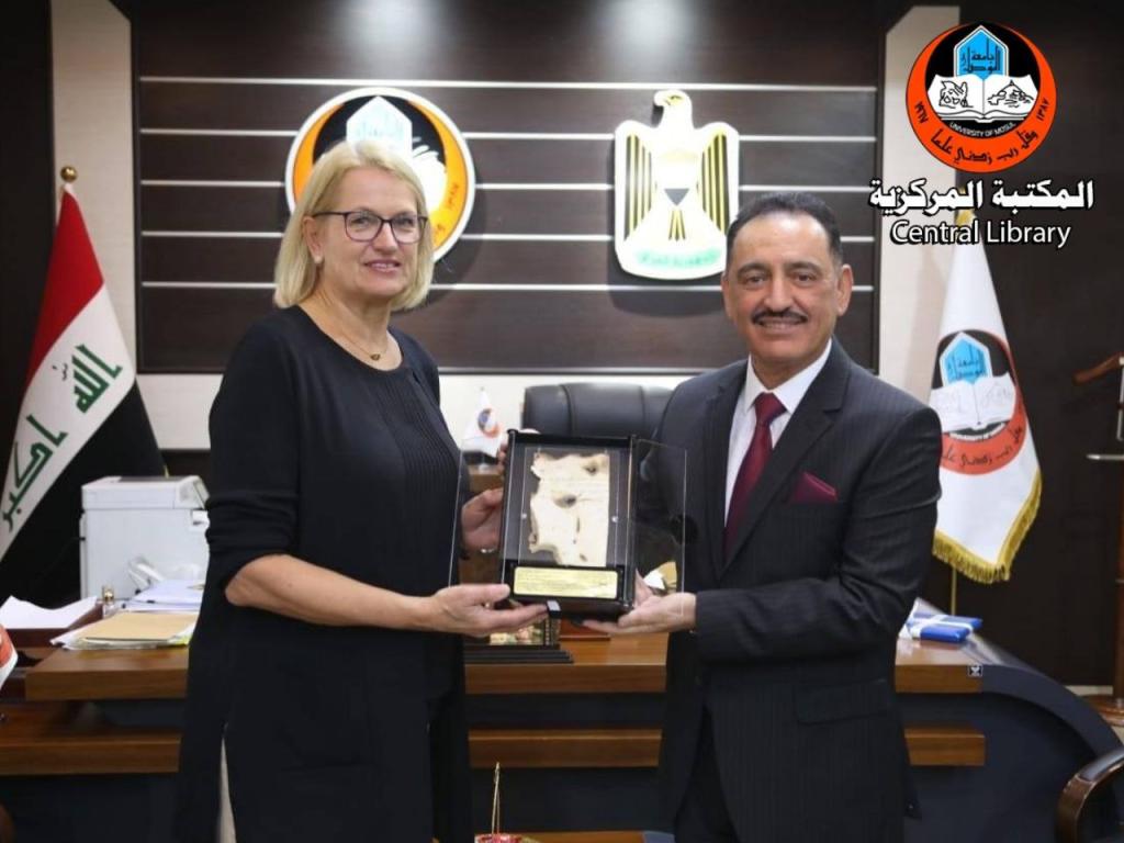 ضمن سعي جامعة الموصل لديمومة التنسيق و التعاون المشترك مابين جامعة الموصل و المؤسسات الرصينة وبالتعاون مع فريق برنامج الأمم المتحدة الإنمائي (UNDP) ، استقبل الاستاذ الدكتور قصي الاحمدي رئيس جامعة الموصل وعدد من مسؤولي الادارات في رئاسة الجامعة وفد بنك التنمية الألماني (KFW) وممثلة السفارة الالمانية برفقة فريق برنامج الأمم المتحدة الإنمائي (UNDP) وتم التداول بخصوص المشاريع التي تم تنفيذها و افاق التعاون المشترك ، كما تمت زيارة المكتبة المركزية وتحدث الاستاذ سيف الاشقر الامين العام لمكتبات جامعة الموصل خلال الزيارة عن القاعات ومحتوياتها وكذلك الخدمات التي تقدمها المكتبة والخطط التي يتم تنفيذها باشراف السيد رئيس جامعة الموصل وبجهود متميزة من كوادر المكتبة، والبرامج والفعاليات الموجودة في المكتبة وقد ابدى الوفد الزائر اعجابه بهذا بما يتم تحقيقه مؤكداً على استمرار التواصل للعمل في مجالات خدمة المجتمع.
