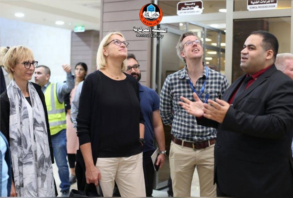وفد بنك التنمية الألماني (KFW) وممثلة السفارة الالمانية برفقة فريق برنامج الأمم المتحدة الإنمائي (UNDP) يزورون المكتبة المركزية