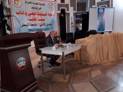 بحضور الأستاذ الدكتور أبي سعيد الديوه جي رئيس جامعة الموصل، عقدت نقابة أطباء العراق/ فرع نينوى وبالتعاون مع رئاسة جامعة الموصل ندوتها الموسومة: "السلوك المهني وآداب مهنة الطب" وذلك يوم الاحد 25 شباط 2018 في المنتدى العلمي والأدبي لجامعة الموصل. وقد ابتدأت فعاليات الندوة التي أدارها بإقتدار الأستاذ والإعلامي ثامر معيوف بآيات من الذكر الحكيم تلاها الدكتور عبدالمالك سليمان محمد. ثم ألقى نقيب أطباء نينوى الدكتور محمد خليل ابراهيم كلمة النقابة حيث هنأ فيها الأطباء الجدد من خريجي كليتي طب الموصل وطب نينوى. بعد ذلك، تَمَّ تكريم الأستاذة الدكتورة بيبين خورشيد السليفاني عميد كلية طب الموصل بدرع نقابة الأطباء العراقية/ المركز العام. يذكر أن هذا التكريم جاء تتويجاً لقرارات مؤتمر نقابة الأطباء العراقية/ المركز العام الذي أُقر على هامش أعمال المؤتمر الحادي والأربعين للنقابة الذي أقيم في فندق بابل ببغداد للفترة من 7 لغاية 9 شباط 2018. بعد هذا التكريم،بدأت فعاليات الندوة من خلال جلستها التي ترأسها الدكتور عامر أحمد خضر. أول المتحدثين كان الدكتور محمود الحاج قاسم عن بحثه الموسوم: "السلوك الطبي الإسلامي". تلاه الدكتور محفوظ سليمان السيدان عن بحثه الموسوم: "أخلاقيات الطبيب". بعد ذلك جاء دور الدكتور ظاهر جميل صالح الحبو عن بحثه الموسوم: "السلوك المهني للطبيب"، فالدكتورة إلهام خطاب الجماس عن بحثها الموسوم: "علاقة الطبيب بالمريض". ثم خُتمت الجلسةَ بالدكتور مدين محمد فوزي ال غدير عن بحثه الموسوم: "الحالات السلبية في ممارسة مهنة الطب". بعدها، فتح المجال لإبداء الأسئلة والتعليقات التي أغنت المواضيع جميعها. أخيراً (وليس آخرا) ختم الدكتور محمد خليل ابراهيم رئيس فرع نقابة أطباء نينوى الندوة بإبداء بعض النصائح والإرشادات والتوصيات لاسيما للأطباء الجدد الذين ملؤوا قاعة المنتدى العلمي والادبي لجامعة الموصل. هذا، وقد حضر هذه الندوة أيضاً كلا من الأستاذ المساعد الدكتور حازم خليل العلاف المعاون الإداري لكلية طب الموصل والأستاذ الدكتور باسل محمد نذير سعيد المساعد العلمي لكلية طب الموصل ولفيف من أساتذة ومنتسبي الجامعة فضلاً عن المنصات الإعلامية التي غطت الندوة. لمزيد من التفاصيل انقر هنا.